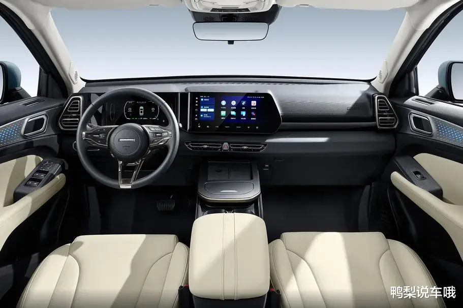 尺寸方面,长宽高分别为4600/1877/1675毫米,轴距为2710毫米。车内采用了环抱式的设计,提供纯黑和黑米的两种配色,中控台的层次感分明,大量采用的是软质材料包裹,配合精致的缝线点缀,质感出色,配有双12.3英寸的中控屏和仪表盘,此外,哈弗枭龙配有怀挡换挡机构和双机位无线充电板、同时还有双层储物空间等元素,在内饰方面表现还算是不错。