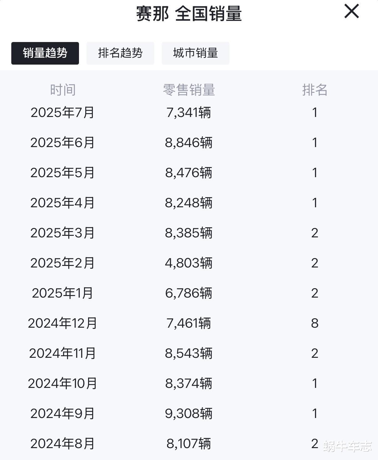 近两年MPV市场新车很热闹,各家车企都在拼命布局智能化的新能源MPV,像岚图梦想家、腾势D9、魏牌高山、理想MEGA等,都是大家所熟知的,热度/流量也很高。不过如果你看过终端市场,你会发现,今年以来,卖得最好的反而是传统老战士丰田赛那,几乎月月位列MPV销量榜第一。