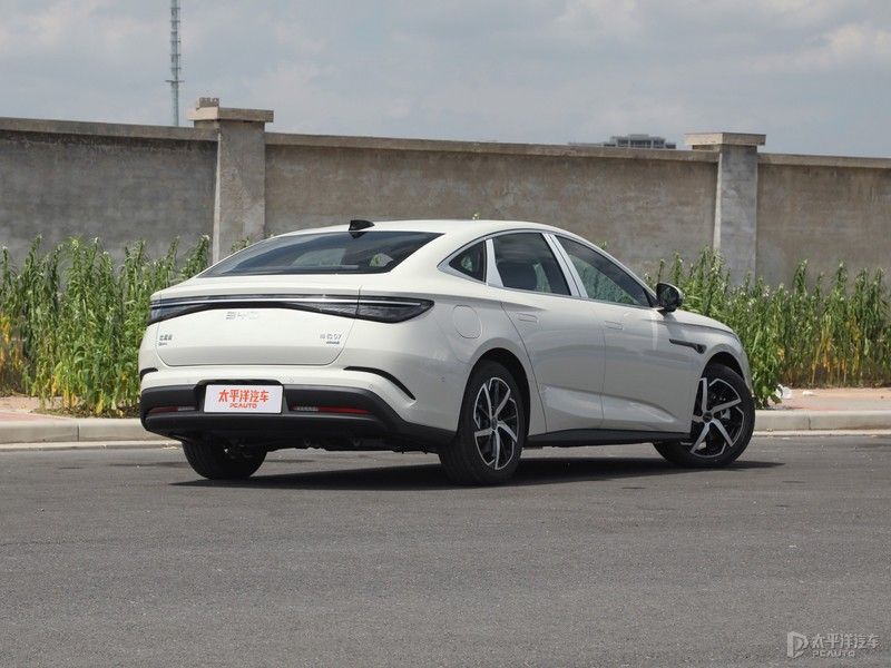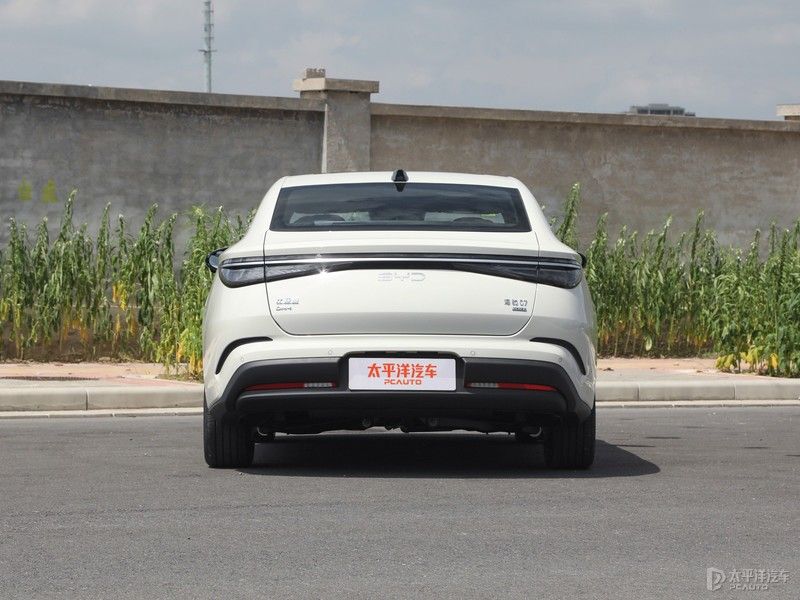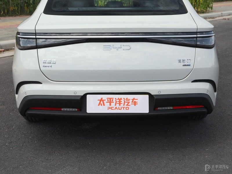 车尾设计简约,后备箱边缘小尾翼造型承托出整车溜背风格;“BYD”字母LOGO为LED发光样式,不点亮时呈金属光泽,尾灯开启后同步发光,提升夜间辨识度;尾灯为“粼光点阵贯穿”设计,灵感来自水滴漾开的粼光,点阵渐变光源有序排列,配合横贯左右的镀铬饰条,有着不错的精致感。