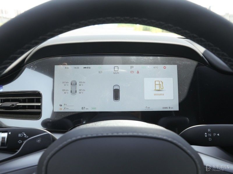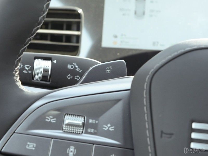车内10.25英寸全液晶仪表显示车辆基础信息;12英寸W-HUD抬头显示可将时速、限速、导航、LDW、FCW、ACC等信息投影至前挡风玻璃。其次方向盘为四轮辐电容式设计,同时增加拨片功能。