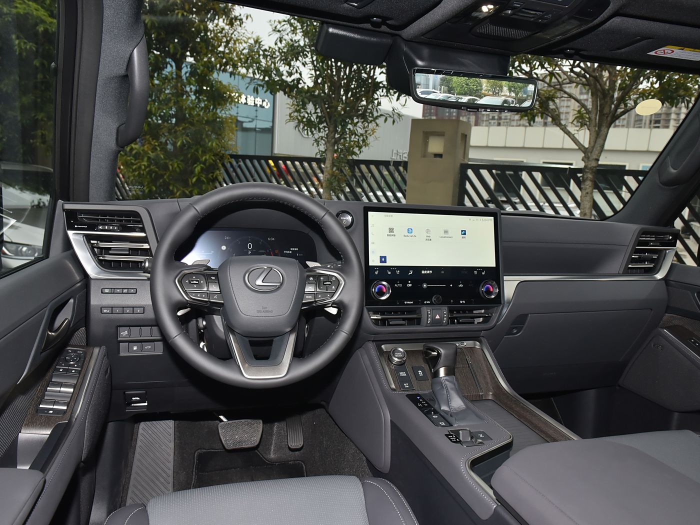 进入车内,新车的中控台采用“和纸纹理”铝饰板与北海道桧木混搭,门板真皮压印雷克萨斯专属“鹤羽折布”纹路。顶配车型配备半苯胺真皮座椅,坐垫填充物含天然乳胶层。中控台处搭载14英寸中控屏搭载Lexus Interface系统,支持“越野仪表”模式可实时显示坡度/气压/扭矩分配。HUD抬头显示面积达10.5英寸,越野时可叠加虚拟越野线。座椅方面,新车的第二排座椅支持前后滑动15cm,第三排可电动放平。后备厢暗藏“探险套件”储物格,内置气泵、补胎液和应急电源。