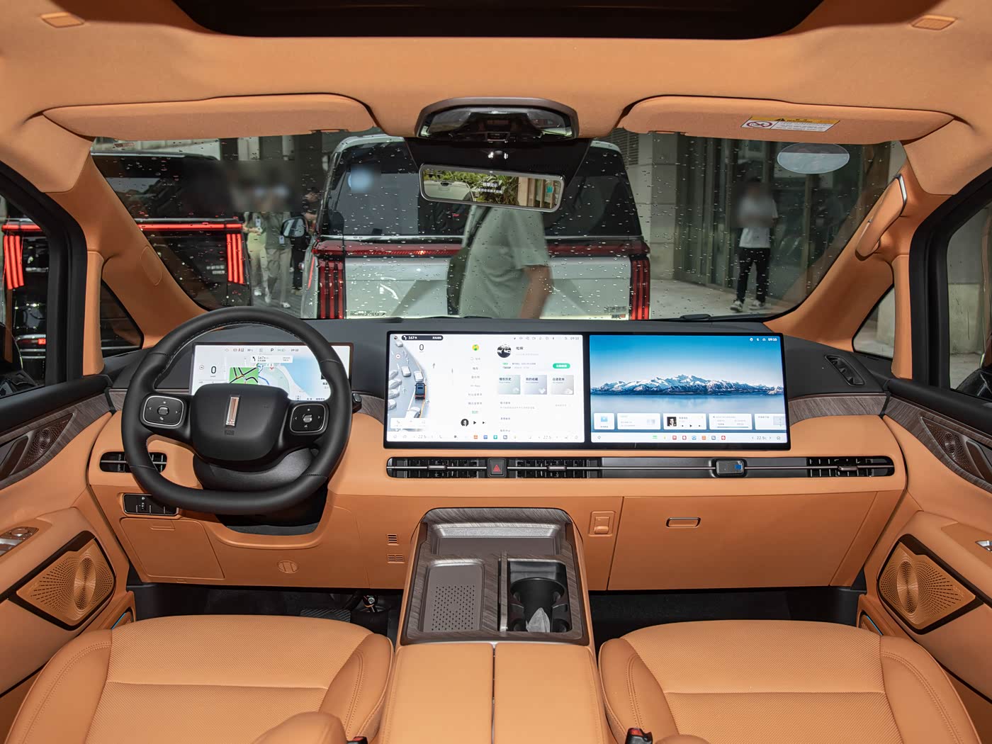 进入车内,前排12.3英寸仪表+双15.6英寸中控/副驾屏+26英寸HUD,搭载Coffee OS 3.2系统与8295芯片,支持Coffee GPT自然语音交互。23扬声器音响(2450W功率)、NAPPA真皮座椅(带按摩/通风),以及云朵白/霞光橙等内饰配色,营造出越级豪华感。第二排的独立座椅标配双活动扶手、小桌板及17.3英寸3K屏,零重力模式可一键切换“悬浮姿态”。12.5L冷暖冰箱支持-6℃至50℃温控,兼顾母婴需求与露营场景。实测二排腿部空间超1米,配合7.1.4声道音响,堪称“移动影院”。三排座椅支持4/6比例放倒,靠背角度可调,地台高度优化后上下车更便捷。虽为紧凑型MPV,但3085mm轴距仍确保成年乘客膝部余量,且配备独立空调出风口与USB接口。