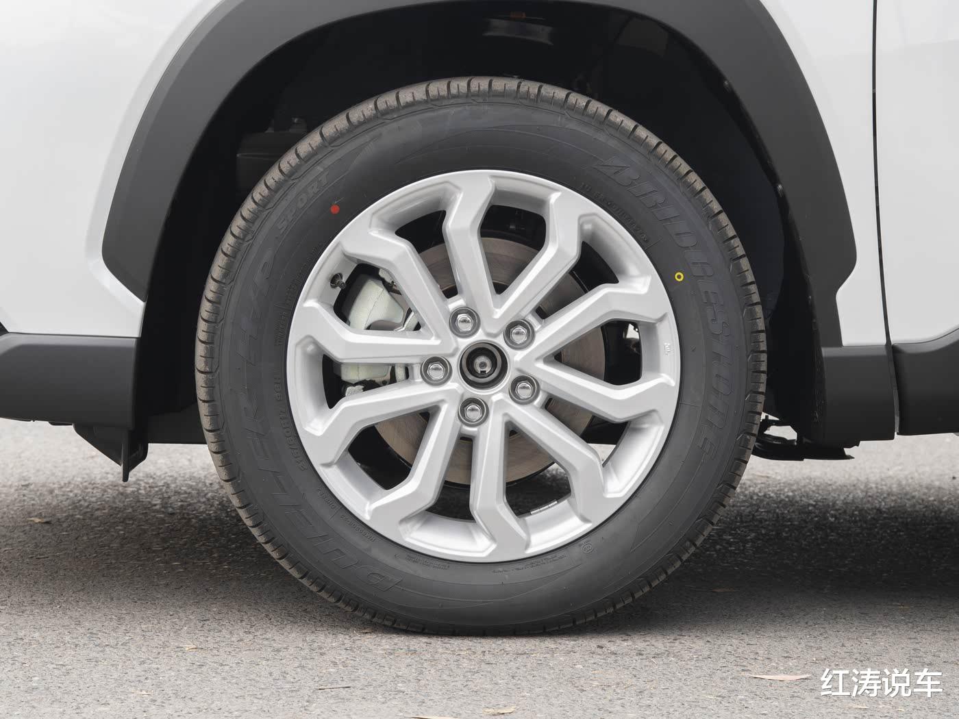 整车长宽高分别为4485*1825*1620毫米,轴距为2640毫米,属于入门级紧凑型SUV,尺寸和捷达VS5、大众途岳新锐、日产逍客接近,采用17英寸铝合金轮毂,外后视镜只有电动调节,没有其他功能,尾灯也是卤素光源的。