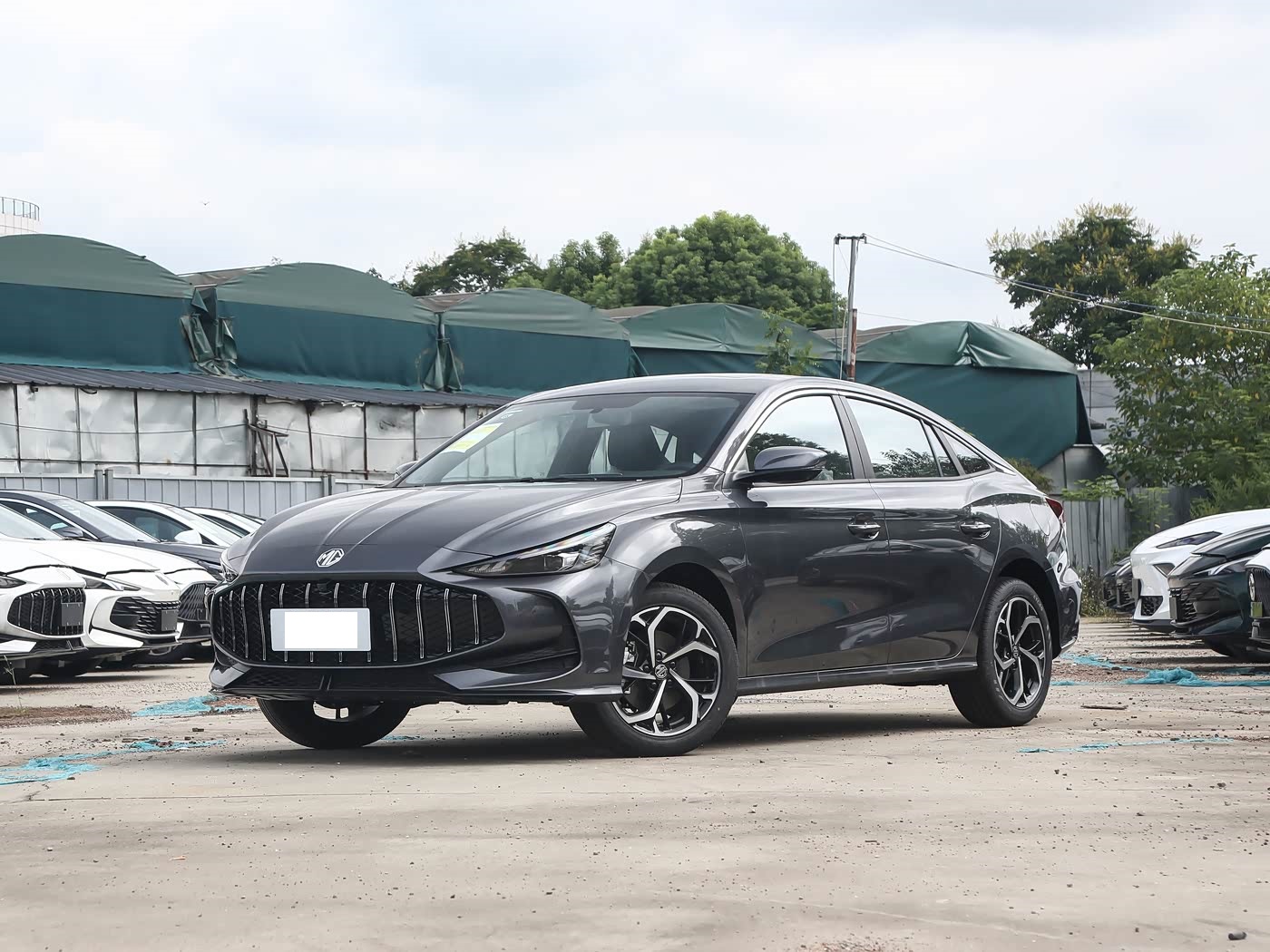 再来看车身侧面部分,侧面延续MG品牌经典溜背曲线,车顶线条从B柱流畅下压至车尾,风阻系数优化至0.28Cd。双腰线设计(上部贯穿门把手,下部上扬)配合17英寸星耀刀锋轮毂(215mm胎宽),形成蓄势待发的俯冲感。车身尺寸达4715×1842×1473mm,轴距2680mm,在保证运动造型的同时,后排头部空间通过巧妙设计保留一拳余量。