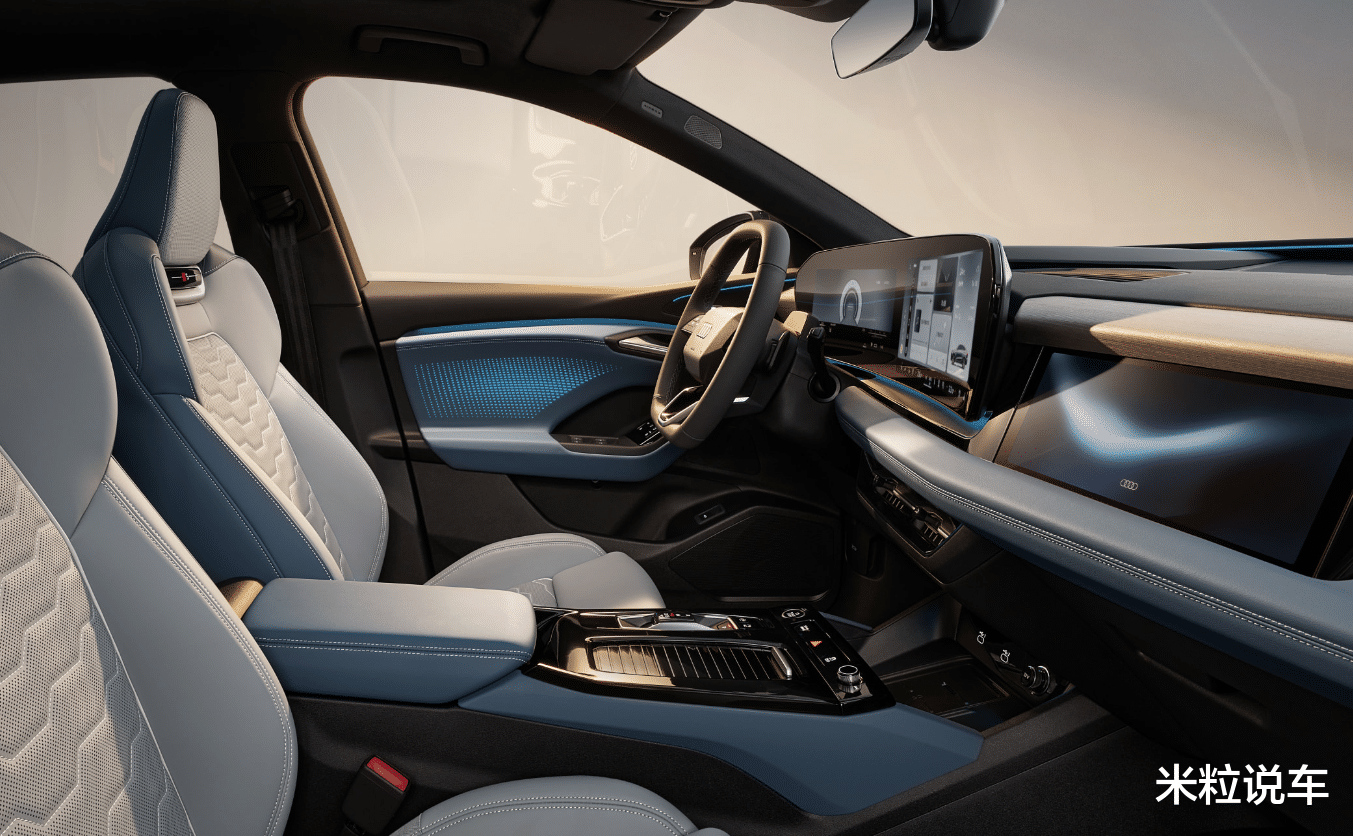 外观设计有着不错的亮点,采用的是轿跑样式的车身设计,车头部分除了拥有数码样式的大灯以外,分体样式的光源,银色的奥迪车标,看起来足够犀利。侧面匹配了20英寸的半密封轮毂,半隐藏样式的机械门把手设计。至于尾部,则是贯穿样式的尾灯,与现款的奥迪Q5L属于截然不同的风格。车身数据部分,这款奥迪Q6L e-tron的长宽高分别为4884/1965/1696mm,轴距是2995mm,这是一款典型的中型SUV。