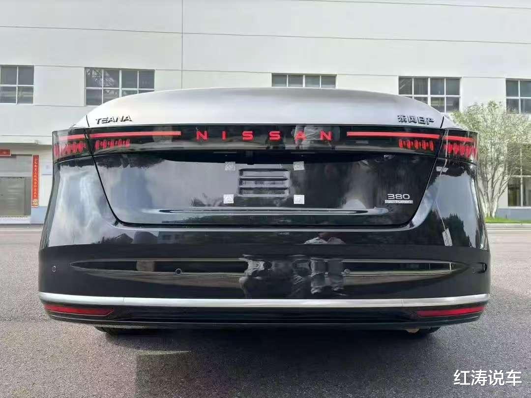 贯穿式尾灯是新能源车惯用的设计,而这次全新天籁也给咱们安排上了!灯罩整体为黑色处理,中间嵌入NISSAN字母标识,具有发光效果,两侧延伸出11枚宝石灯体,看着晶莹剔透,全新天籁带有小鸭尾式扰流板,英文尾标回归TEANA,不再使用ALTIMA。