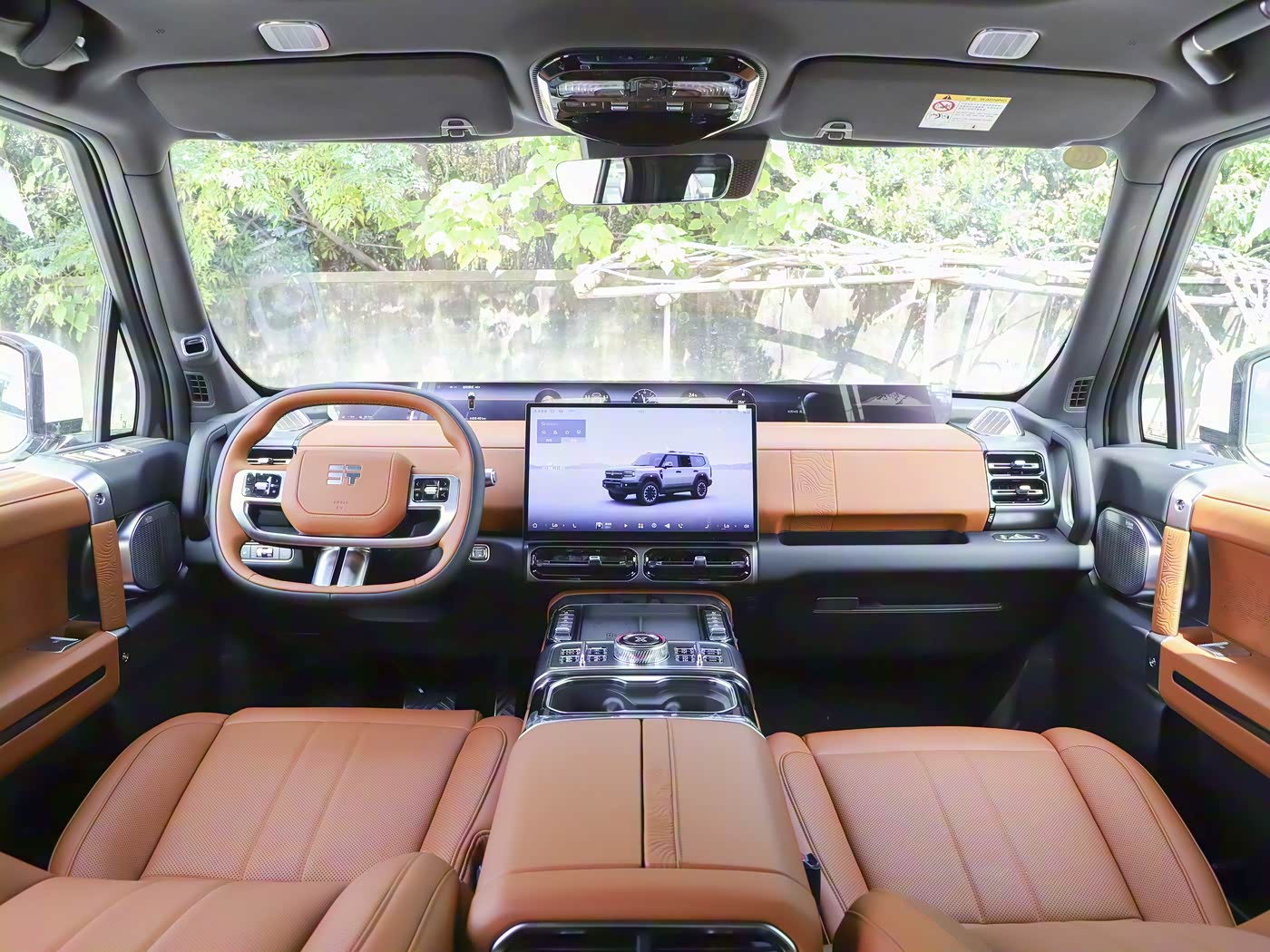 进入车内,平直的中控台部分配备了35.4 英寸 “纵横天际屏” 与 15.6 英寸悬浮中控屏组成四屏联动系统,操作流畅且支持四音区控制,副驾娱乐屏与后排 17.3 英寸吸顶屏则打造出移动影院体验。整体科技感十足。大面积的软质材料包裹也是豪华感十足,尤其是座椅布局提供 5 座与 2+2+2 式 6 座选择能够满足不同的出行需求。前排 “女王副驾” 配备电动腿托与 8 点按摩功能,Nappa 真皮面料触感细腻;6 座版二排独立航空座椅支持通风、加热与按摩,右侧座椅可联动副驾一键放平,形成超长休憩空间。储物空间同样亮眼,5 座版后备厢容积达 850L,6 座版放倒第三排后可拓展至 1200L,露营装备、折叠自行车轻松容纳。中央扶手箱内置双温控冰箱,能满足饮品冷暖储存需求,细节处尽显贴心。