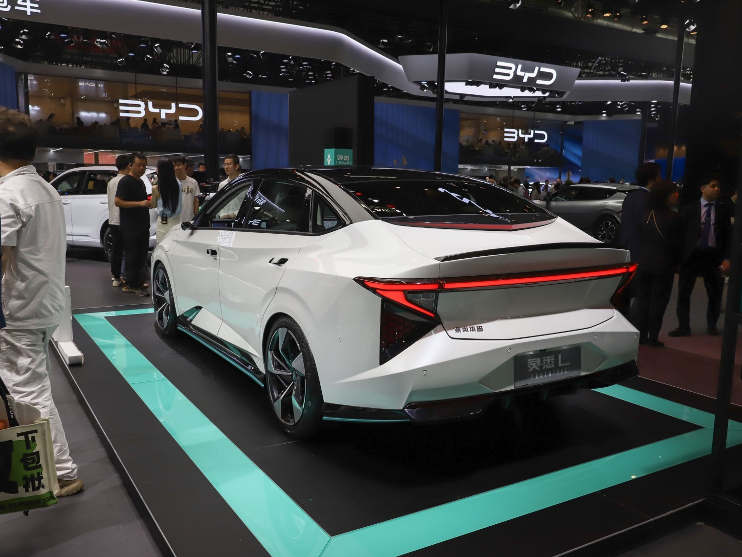 再来看车尾部分,车尾设计与车头形成完美呼应,贯穿式尾灯采用锋利的尖角造型,与车身侧面的凌厉线条衔接自然,夜间点亮时呈现出独特的光幕效果,辨识度极强。上翘的小鸭尾尾翼并非装饰,其倾斜角度经过反复调校,能为高速行驶提供稳定的下压力。后包围的气流扩散器设计则隐藏在下方,与溜背车顶形成完整的空气动力学闭环。这种 “上扰流下疏导” 的设计逻辑,让灵悉 L 在实现运动外观的同时,保障了能效表现。