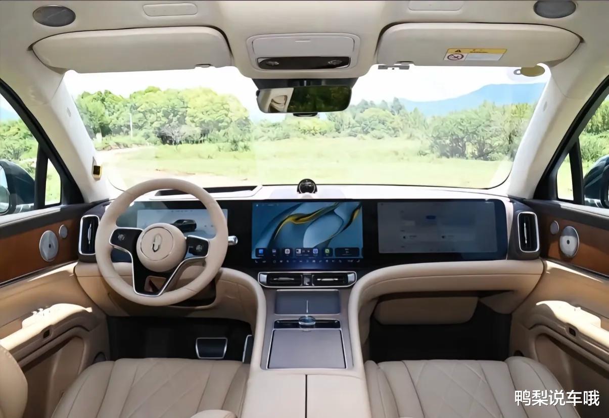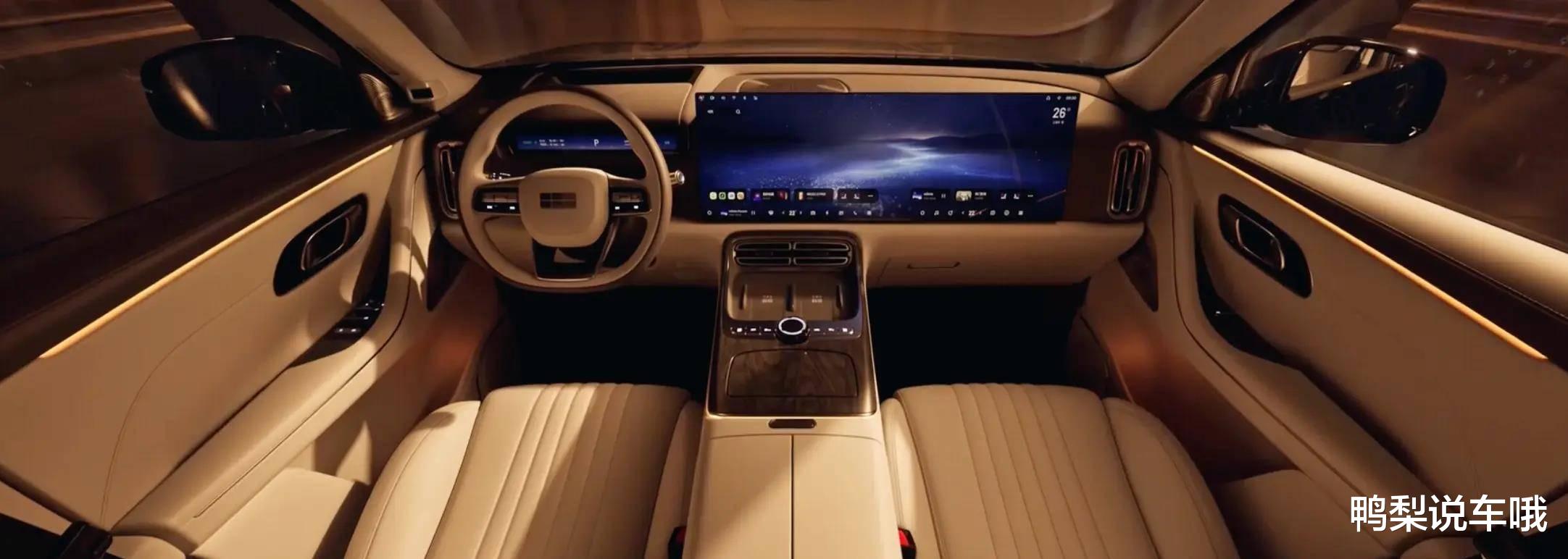 内饰方面,车内大面积采用真皮包裹,座椅采用菱形格纹工艺,质感相当不错。鸭梨特别喜欢它提供的多种内饰颜色选择,尤其是赤茶橘和白沙杏,显得温馨又高级。中控配备12.3英寸全液晶仪表、15.6英寸中控屏以及16英寸副驾娱乐屏,车机搭载 HarmonyOS 4 系统,整体观感科技感十足,黑边略粗但完全可以接受。