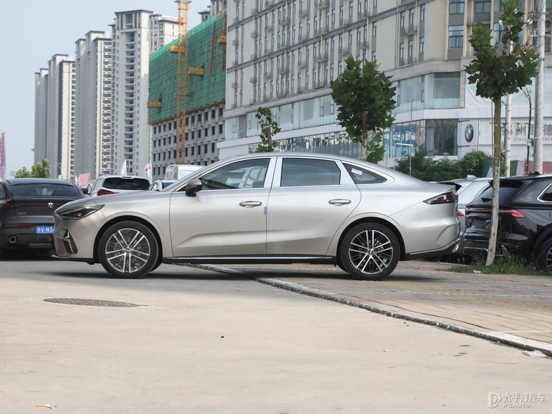 新车前脸采用直瀑式进气格栅,12根格栅对应中国文化的“满数”,比如十二时辰、十二个月等。前脸搭配三段式LED大灯和狭长造型的前大灯组,这款前大灯有效照明距离超过170米,有效照明距离约2个足球场的长度,照射宽度25米,可同时点亮双向6车道,安全系数拉满。