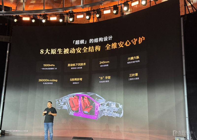 在车身安全方面,新一代BMAEvo全球模块化架构有四大原生安全进化:前防撞梁用超高强钢与B字型截面,抗冲击能力提升24%,前后配240mm、200mm超长吸能盒(行业2倍),吸能效率可提升40%;碰撞载荷超140kN时,发动机下沉技术可让副车架脱开卸力,乘员舱侵入量降至少20%;三叶草卸力结构使正面碰撞抗冲击提54%;底部六横六纵布局让乘员舱抗冲击提升15%。此外,第5代帝豪还配备了70%高强度钢笼式车身及8大被动安全结构,包括26000N・m/deg扭转刚度、1500MPa一体式硼钢门环等,强化车身整体防护。