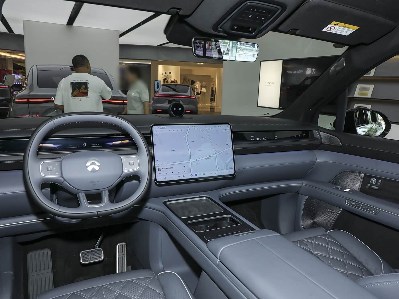 进入车内,内饰以 “境由心生 宁静致远” 为设计理念,提供苏木红、珍珠贝等四种源自大地灵感的内饰主题,大面积的软包覆材质,让指尖所触皆细腻舒适。中控台部分配备48英寸天际线屏、16.4英寸中控屏和38英寸AR-HUD抬头显示系统,后排方面,全新蔚来ES8提供2+2+2式6座和2+3+2式7座两种布局。其中,6座版副驾和第二排均为零重力座椅,第二排右侧座椅还可进行150毫米横向移动。无论6座还是7座车型,全新ES8车内所有座椅均支持加热功能,第二排右侧座椅还具有腿托加热,座椅通风功能在前排和第二排为标配,7座版第二排仅在两侧座椅支持通风功能。