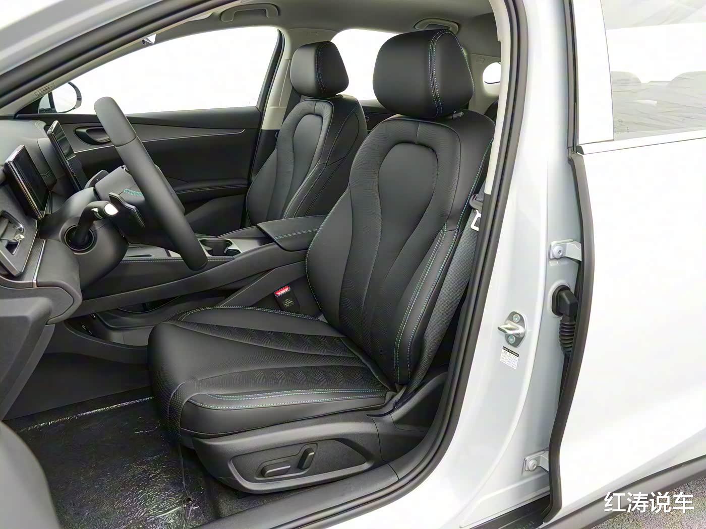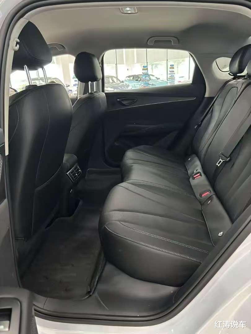 后排腿部空间充足,地板中间平整,坐垫够长,能够保障良好的乘坐舒适性,我们可以看到实车是没有全景天窗的,新款海豹06DM-i会不会取消了这个配置,暂时还不能确定。