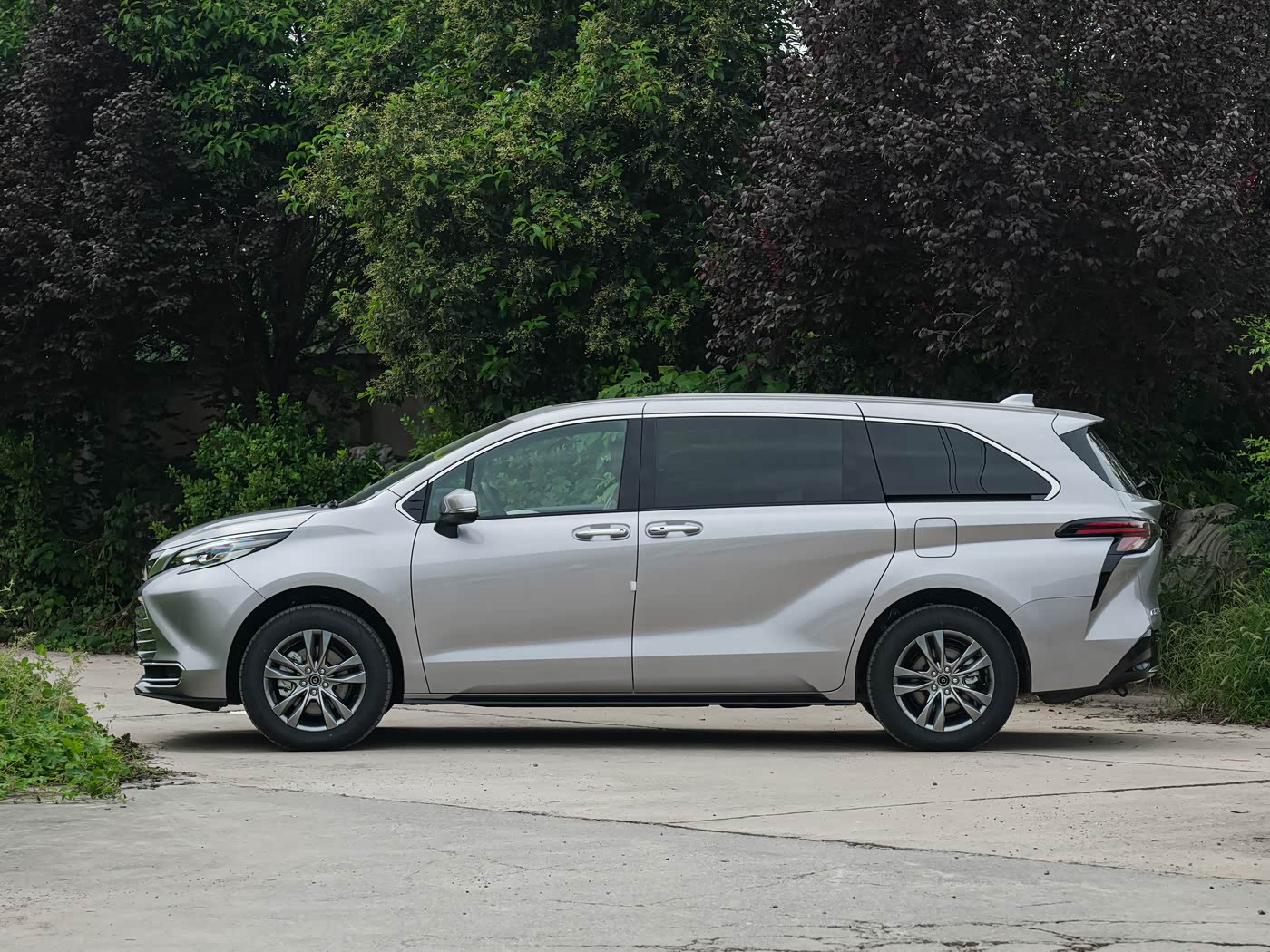 再来看车身侧面部分,车身侧面采用了流畅的腰线设计,从前翼子板延伸至尾灯组,不仅提升了整车的视觉长度,还增强了动态感。新款车型提供了18英寸和19英寸两种轮毂选择,其中19英寸多幅轮圈样式更为动感,18 英寸多辐式轮毂采用银黑双色涂装,兼顾实用性与视觉效果,轮胎尺寸适配家用场景的舒适性与经济性。与整体车身风格协调统一。此外,车身尺寸为长5米、宽2米、高1.85米,轴距达到3米零60毫米,为中大型MPV的标准尺寸,确保了宽敞的内部空间。