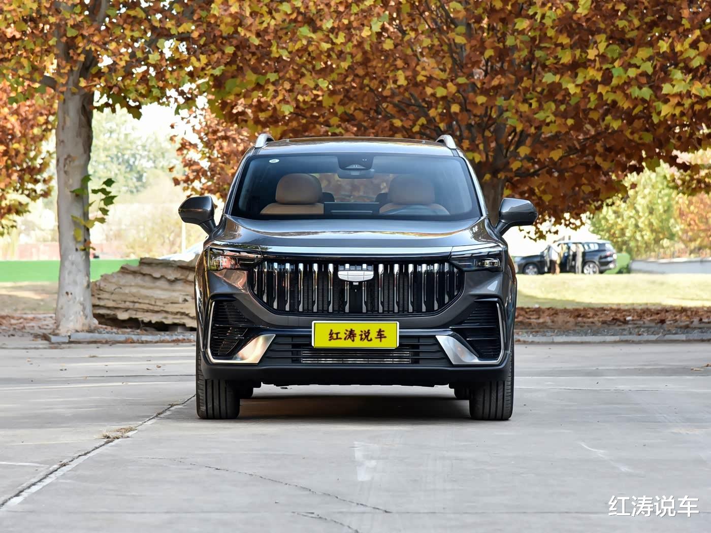 虽然吉利把它定义为第三代豪越L,但新车外观没有明显的变化!基本延续了2024款车型的设计,车头高大,LED大灯怒视前方,前脸格进气格栅内部为直瀑镀铬饰条填充,但格栅边缘应用了黑色饰条,这么一来与大灯的结合更显紧密,还有前包围两侧留有更大尺寸的导流槽造型,加入了L状的银色装饰件。
