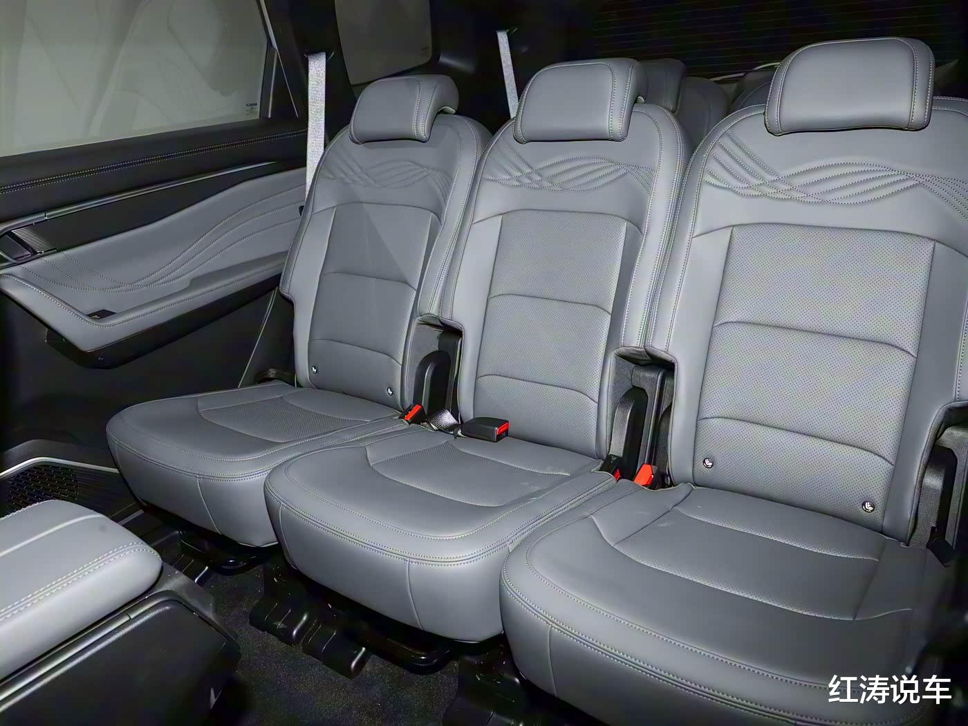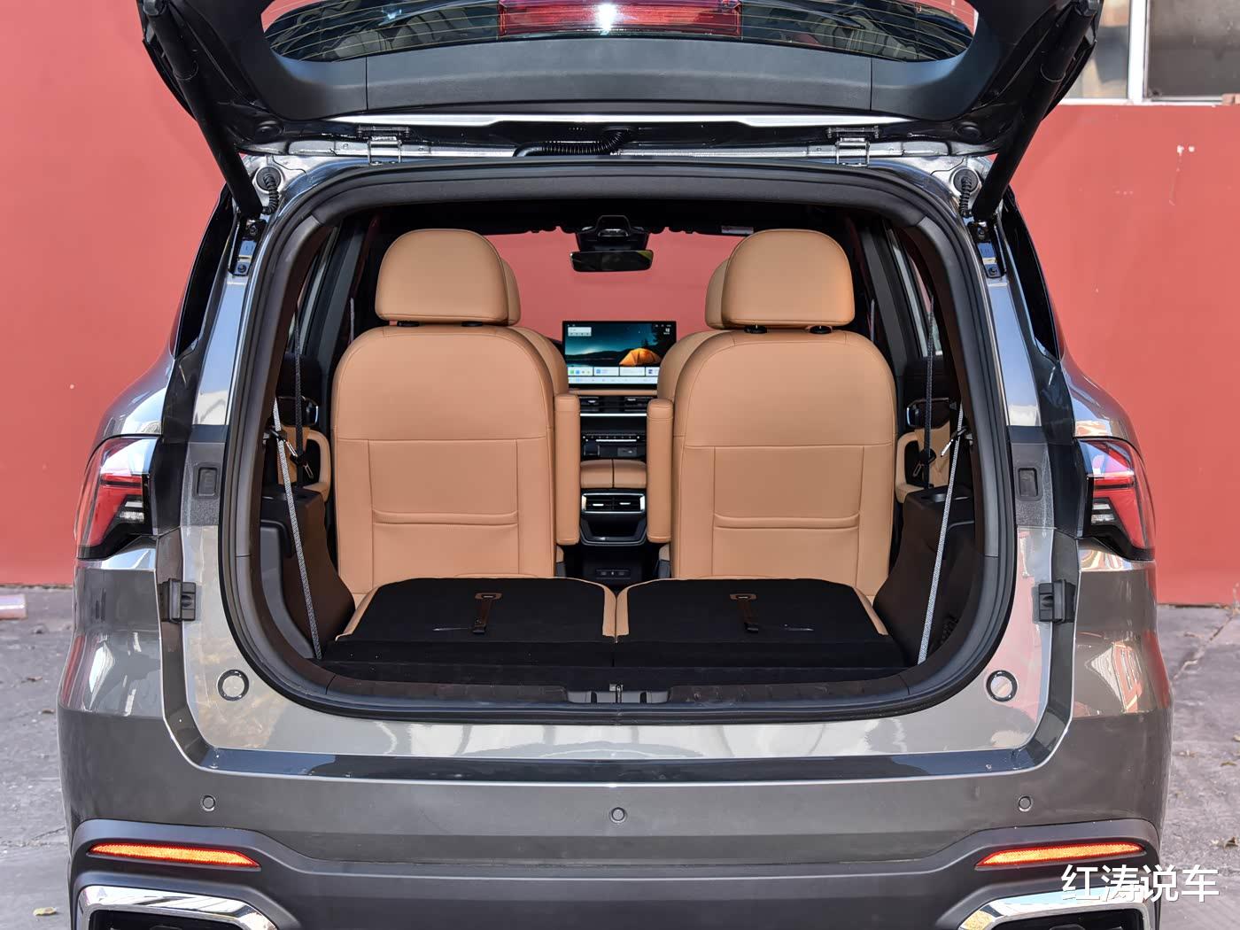 新款豪越L提供5座、6座以及7座车型,其中5座车型为2+3布局,空间宽敞,拥有一个很大容积的后备厢,6座车型为2+2+2的布局,7座车型为2+3+2的布局,相比之下6座车型的乘客进入到第三排会更便利一些,而6座和7座车型的第三排座椅适合短途应急,长途乘坐舒适性一般,并且后备厢基本装不了什么东西,好在后排座椅放倒后平整度高,实用性比较强。