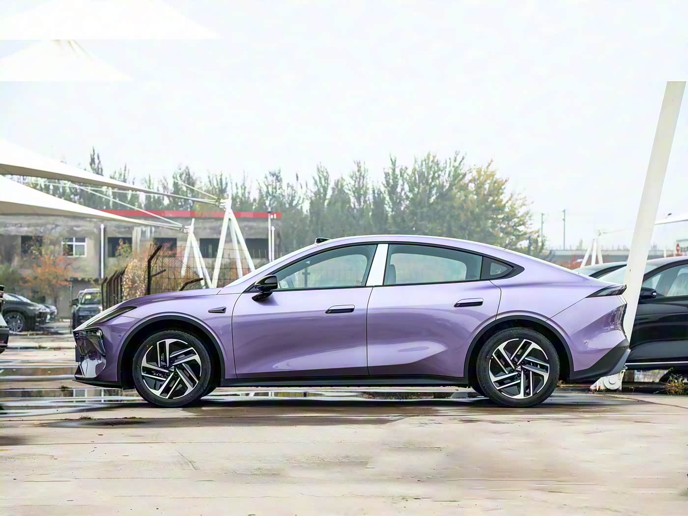 再来看车身侧面部分,车身侧面是L06的一大亮点,流畅的溜背式造型配合笔直的腰线,营造出前低后高的运动姿态。悬浮式设计的无框后视镜不仅美观,更提供了更广阔的视野范围。半隐藏式门把手设计在降低风阻的同时,保持了车身的简洁美感。整体层次感以及运动氛围更出色,而19英寸花瓣式运动轮毂与荧光绿色卡钳相得益彰,将运动气息提升至全新高度。车身尺寸为483019051480mm,轴距达到2900mm,为车内空间提供了充足保障。