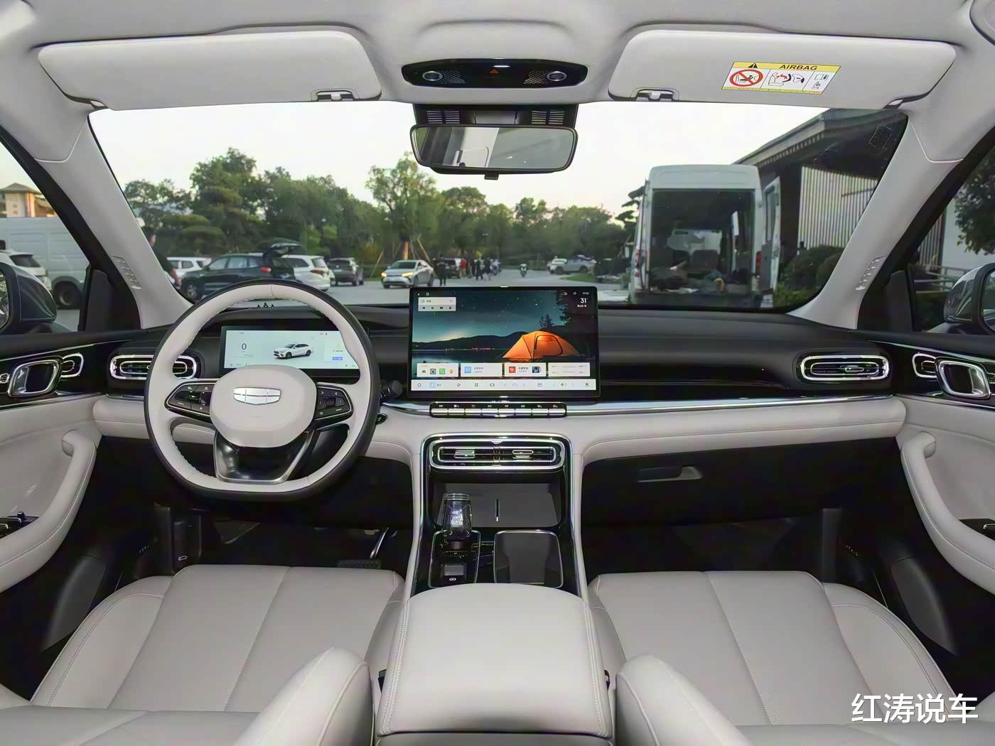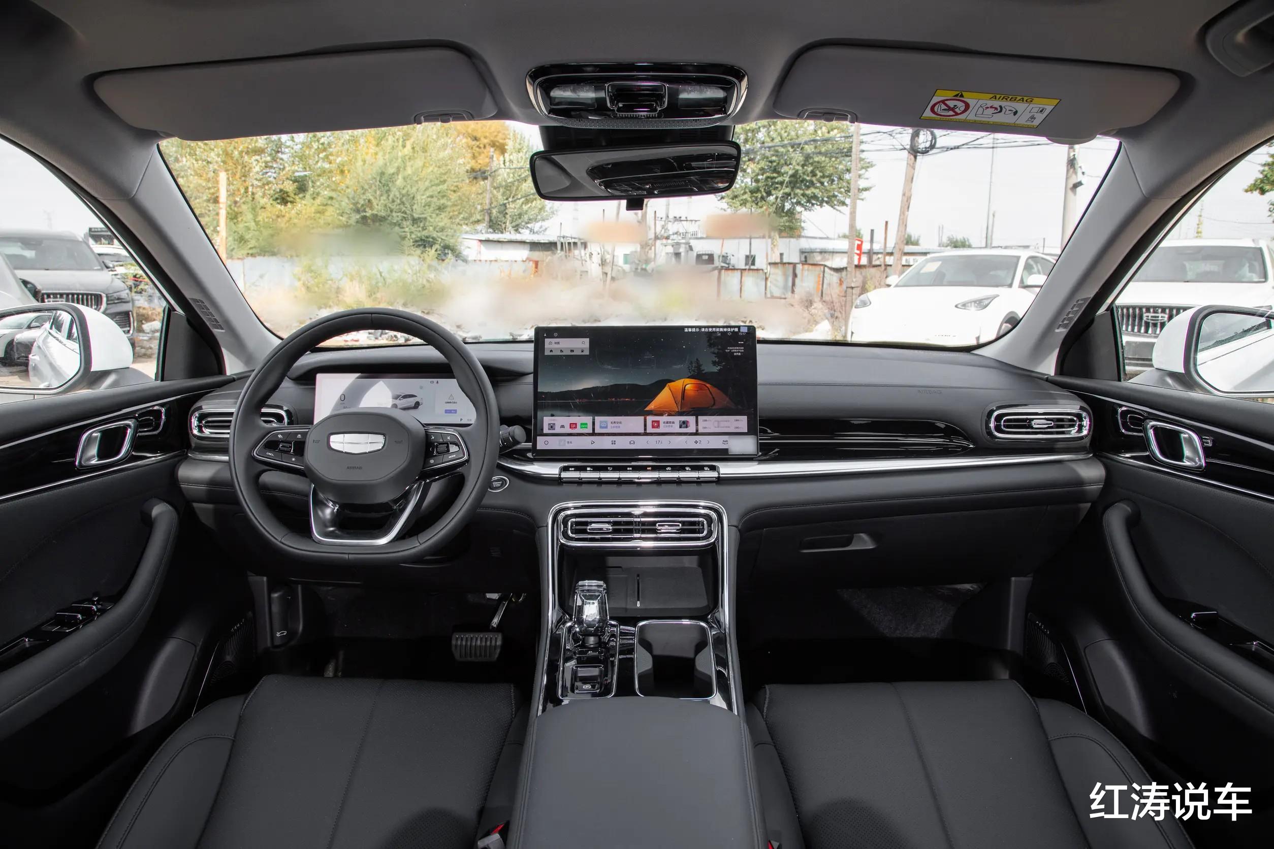 内饰方面,全新帝豪的中控台富有层次,车内使用了更多的软性材质覆盖和皮质包裹,空调出风口等位置,应用了适量的镀铬,标配10.2英寸液晶仪表,1.5L豪华型(入门版)是10.1英寸中控屏,其余车型都是14.6英寸中控屏,搭载Flyme Auto车机系统,支持HUAWEI HiCar、Carlink、Flyme link手机互联和映射,支持语音双区域唤醒识别、语音连续识别、应用商店等。