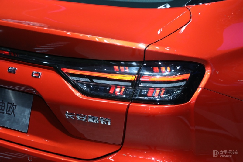 微翘的尾部角度也是优化空气动力学的一部分,尾灯采用点阵的数字化设计,与头灯形成呼应,整体融入了福特Mustang上经典的“三柱型”元素,并以立体错层方式呈现,传承了福特品牌的运动基因。