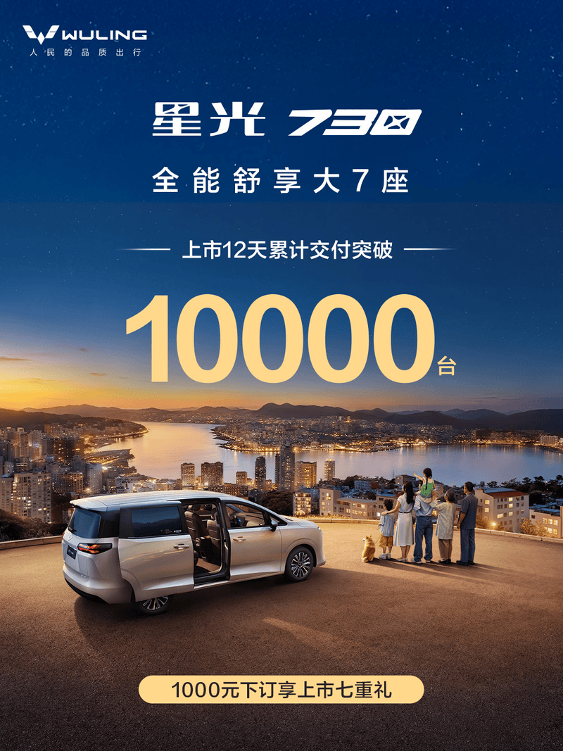易车讯日前,五菱官方官方宣布星光730上市12天累计交付破10000台。新车于11月12日正式上市,共推出4款车型,官方指导价7.30-10.98万元,置换补贴价7.10-10.58万元。
