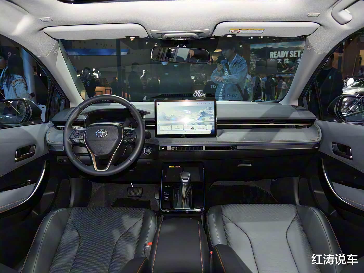 内饰方面,新款卡罗拉的中控台布局简洁,呈现出双层样式,中间位置使用皮质覆盖,并做了缝线处理,配备12.9英寸悬浮式中控屏,以及8.8英寸内嵌式全液晶仪表,新车还全系标配Toyota Pilot驾驶辅助系统。