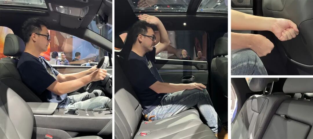 空间表现上,我1.83m的身高在车内体验,前排和后排头部空间都十分宽敞,后排腿部空间也是足够优秀。尤其乘客的脚还能进一步伸展到前排座椅底下,靠背也能够调节,从而提升长途乘坐体验。