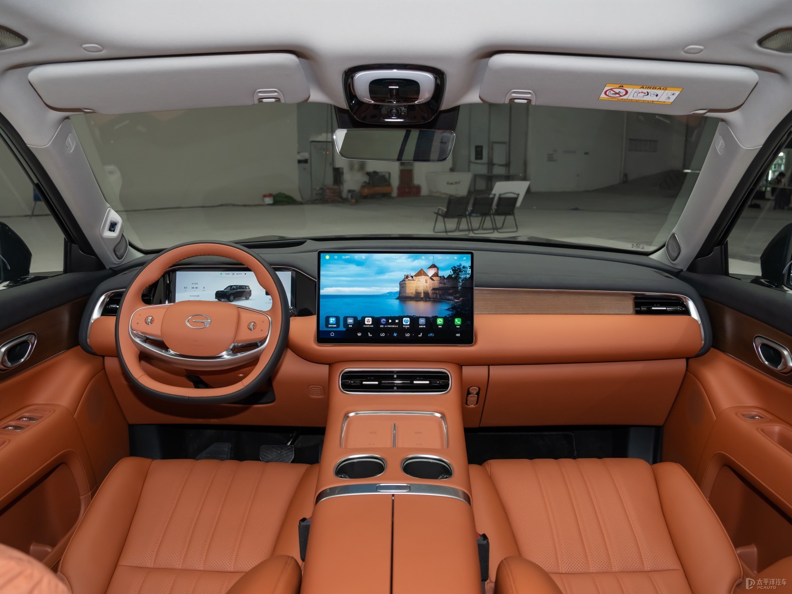 内饰方面,采用环抱式设计,15.6英寸中控屏与12.3英寸液晶仪表组成双屏风格。并提供27英寸W-HUD。内饰配色上,车辆提供丹霞橙、烟云米、夜宇黑,三种选择。