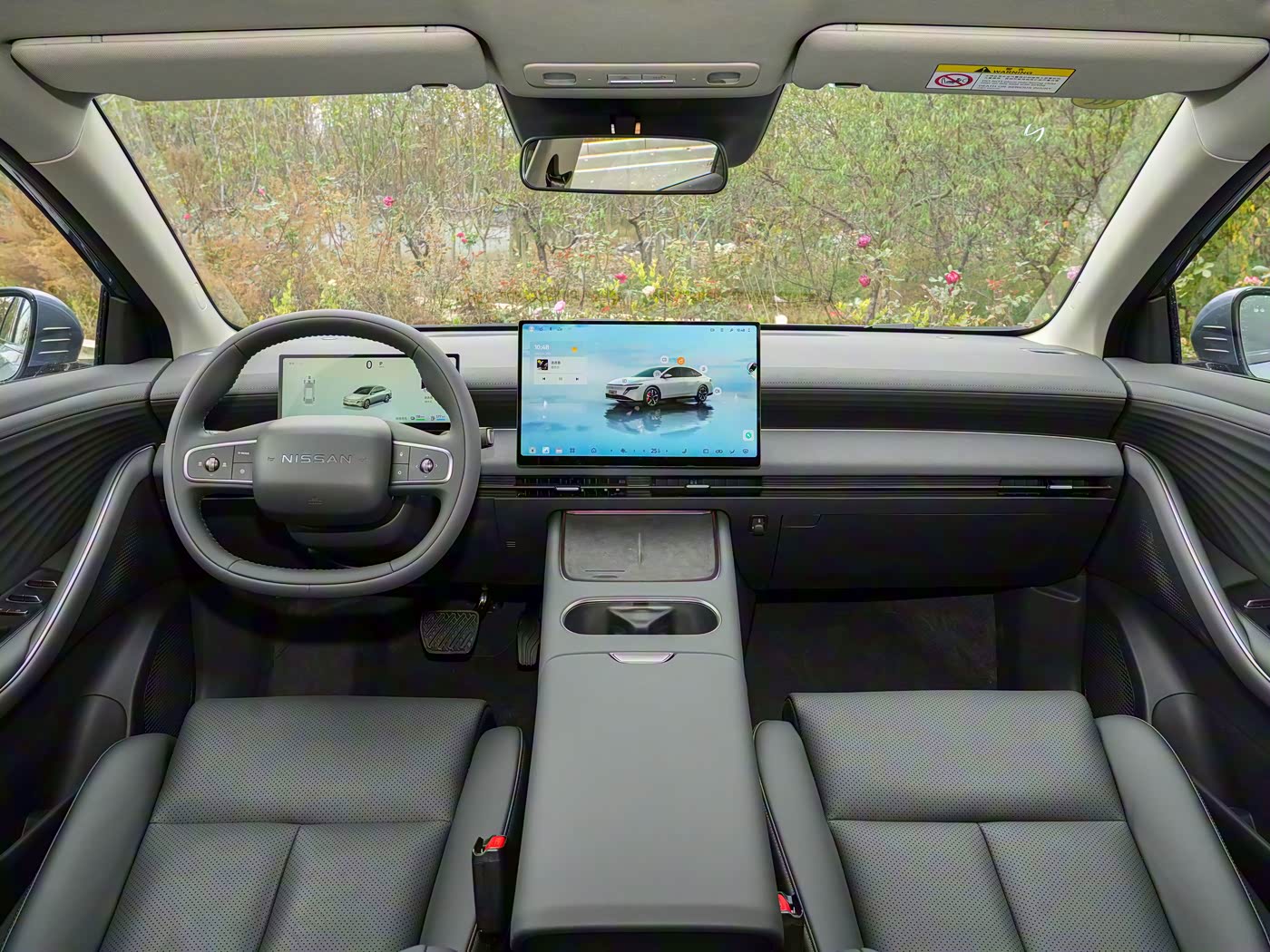 进入车内,内饰延续了日产简约实用的设计风格,整体布局规整有序,注重操作便利性与乘坐舒适性。中控台采用软性材质包裹,搭配细腻的缝线工艺,虽未堆砌过多豪华元素,但触感扎实,符合合资品牌的品质水准。中控屏采用悬浮式设计,尺寸虽未明确标注,但显示清晰,操作流畅。空间表现方面,2815mm 超长轴距带来了宽敞的驾乘空间,前排座椅延续了日产 “大沙发” 的舒适基因,坐垫厚实柔软,支撑性与包裹性出色,长时间乘坐不易疲劳。后排空间同样亮眼,身高 180cm 的乘客落座后,腿部仍有两拳左右余量,头部空间也较为充裕,完全能满足家庭出行的需求。