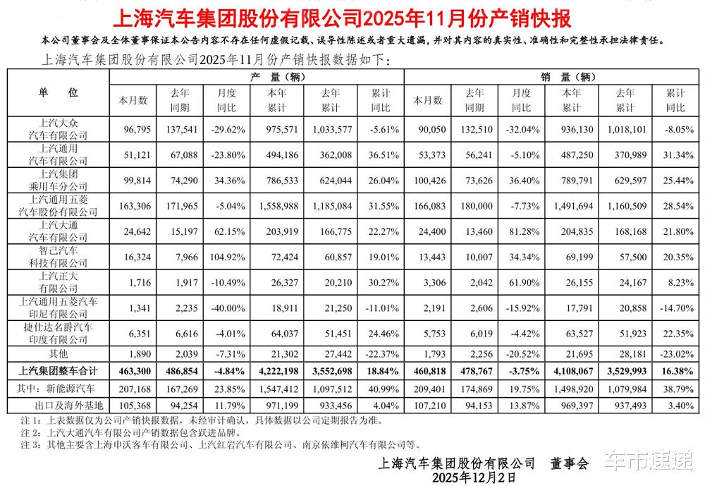 从各大集团前11个月的市场表现来看,有望登上2025年度销冠的只有比亚迪和上汽集团,只不过上汽集团在比亚迪面前还略逊一筹。从已知的部分车企销量不难看出,不少车企11月份的市场表现并不逊色金九银十,上汽集团旗下的上汽通用五菱今年前11个月的市场表现就比较抢眼。