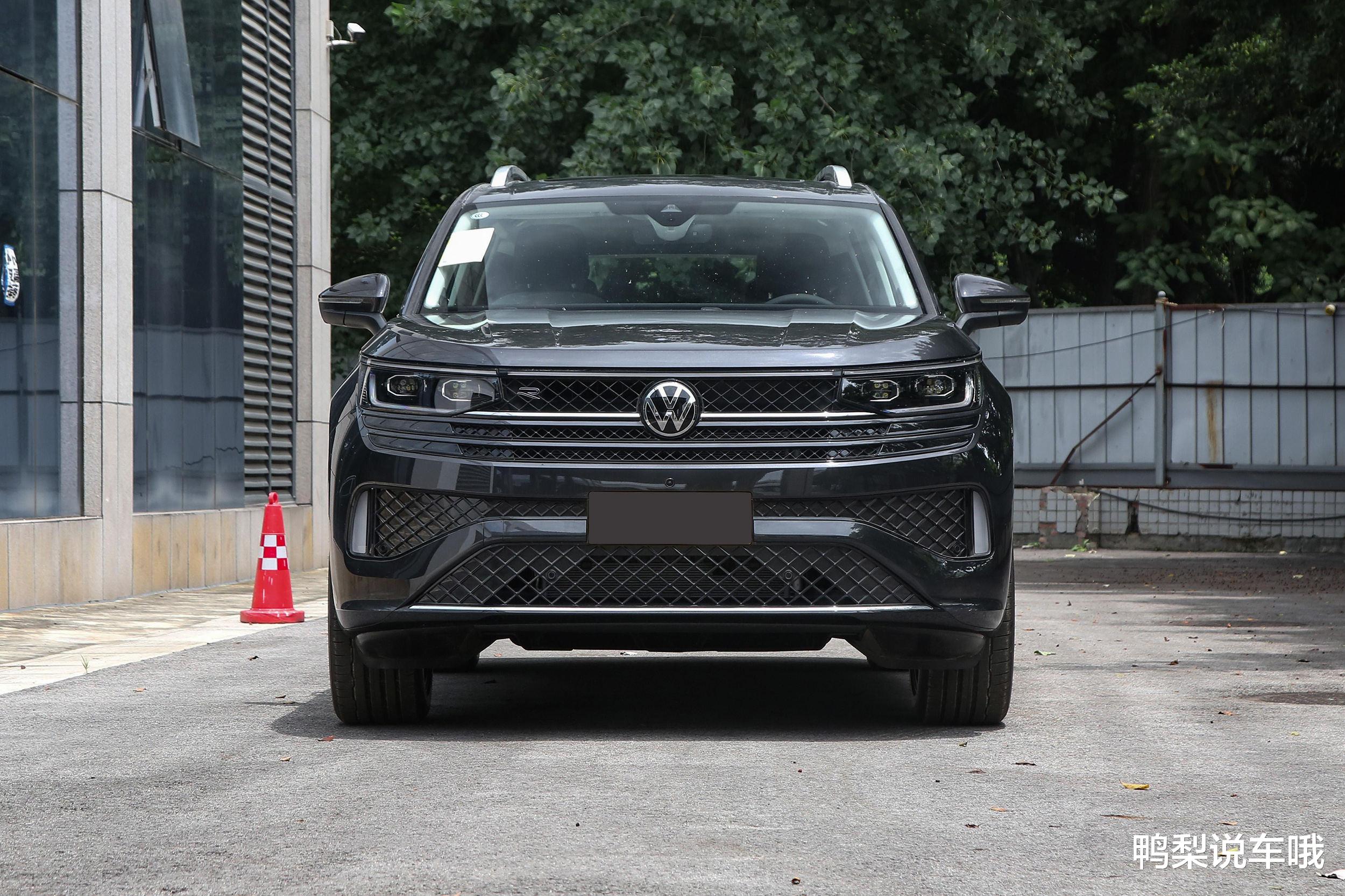 2026改款揽巡预计2026年一季度才正式上市。外观延续了家族式的"奔牛式"前脸设计,横向延展的进气格栅与两侧LED大灯组无缝衔接,视觉上拉宽了车头。R-Line版本更是帅气,在中网左侧增加了专属标识,下包围采用双层蜂窝结构,运动气息直接拉满。前包围两侧导流槽经过黑化处理,强化了那种硬派气质。