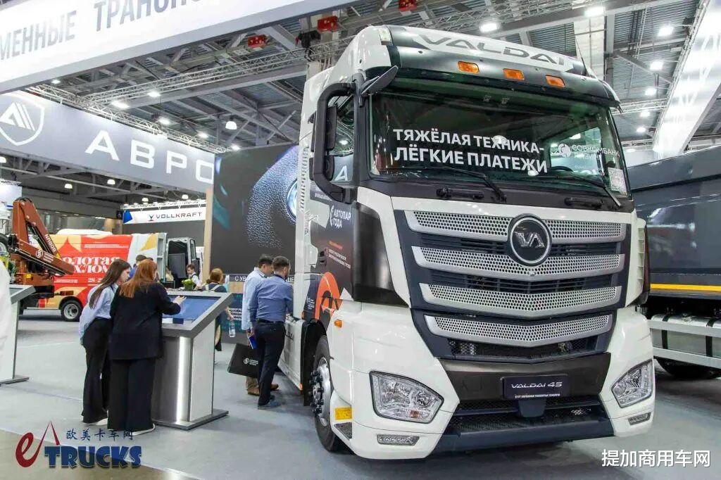此外,展会上还出现了一个奇怪的品牌:Valdai。他们的车看着哪哪都像欧曼,但车标却不是欧曼。实际上,这个品牌不仅为GAZ集团生产零部件。还从中国进口车辆部件进行组装,这便有了Valdai品牌的各种卡车。