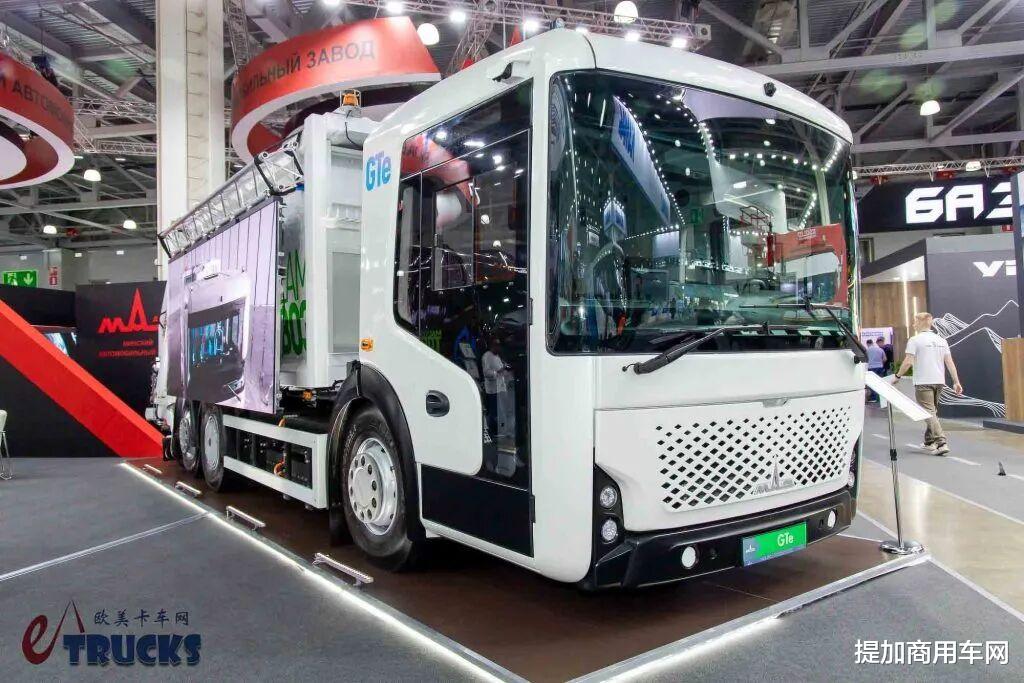 在现场,MAZ还展示了GTe纯电动垃圾车。这款车型的特殊之处在于:它采用了低入口设计,驾驶室向前探出较多,得以降低高度,既方便工作人员频繁上下,也改善了前方视野,更适合城市环卫作业。该车的造型与此前的MAZ-X低入口混合动力牵引车类似,不过采用了更为清洁的纯电动力,匹配150kW电机及超250kW·h的电池,续航里程超200公里。进入电气化时代,低入口卡车的能见度也是越来越高了。