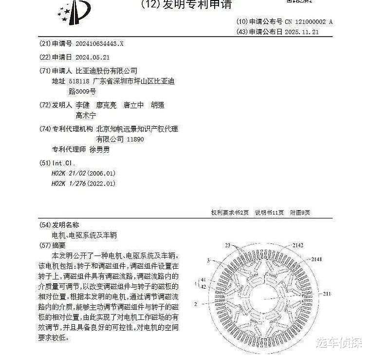 而比亚迪新公开的“可变磁通量永磁电机”专利,则像是给传统电机戴上了智能呼吸调节器,让电机能够在不同速度下自由调节磁场强度,从而保持更高效率。这项专利的出现,意味着电动车续航管理将进入可控阶段。