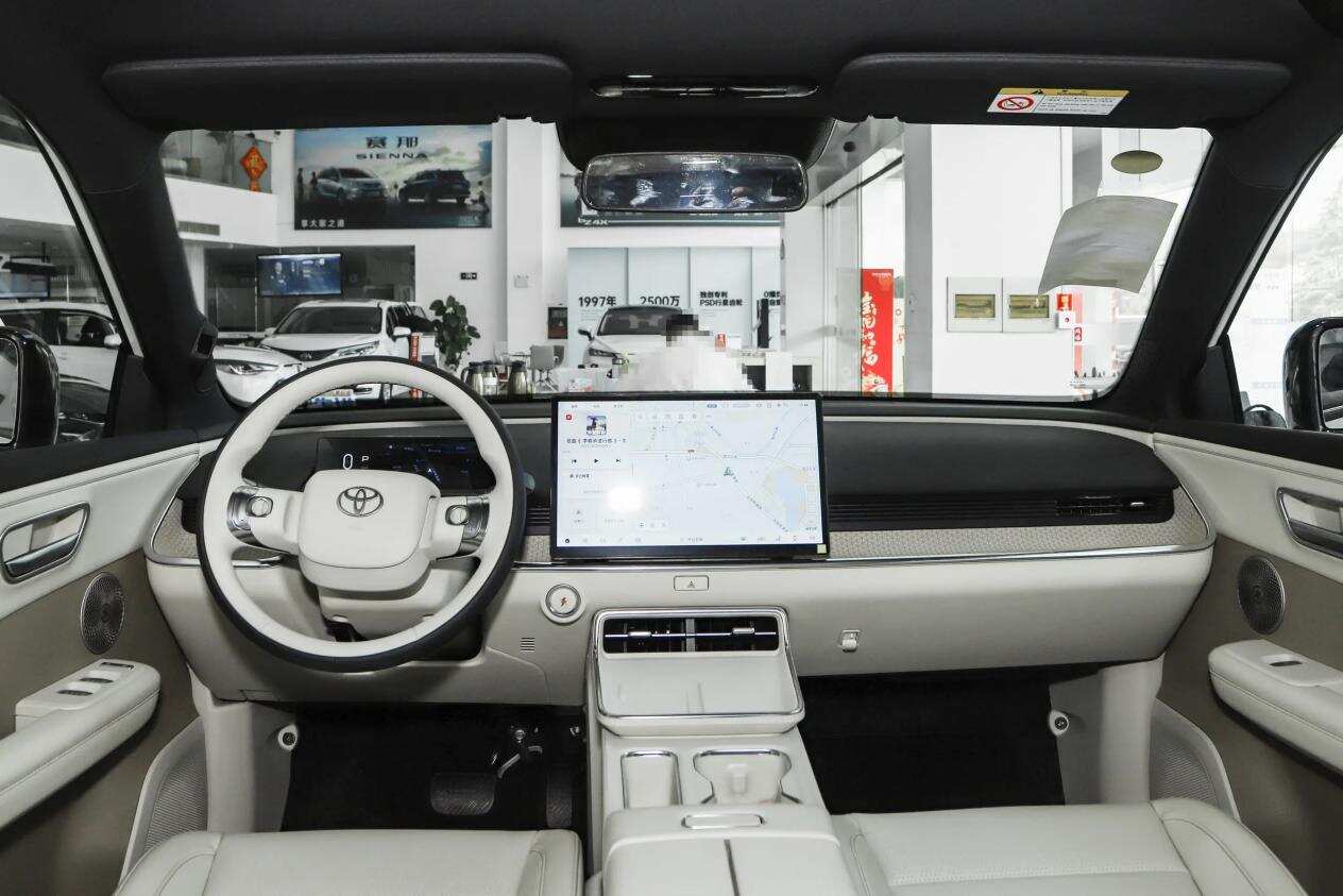 内饰设计跟丰田一贯的实用风格大不一样,环抱式座舱有着较强的包裹感,中控台采用分层式布局,比较吸睛的是车内标配的14.6英寸悬浮式中控大屏,在丰田品牌旗下车型里,这块屏幕的尺寸可以说是非常大了,屏幕的分辨率还不错,比较清晰。