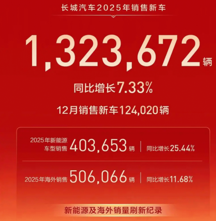 不向“价格战”低头的长城汽车,2025年销量话题一直伴随其左右,全年最终销量132.37万辆,同比增长7.33%,事实上在拒绝“以价换量”的策略下守住了上一年的盘,已实属不易。