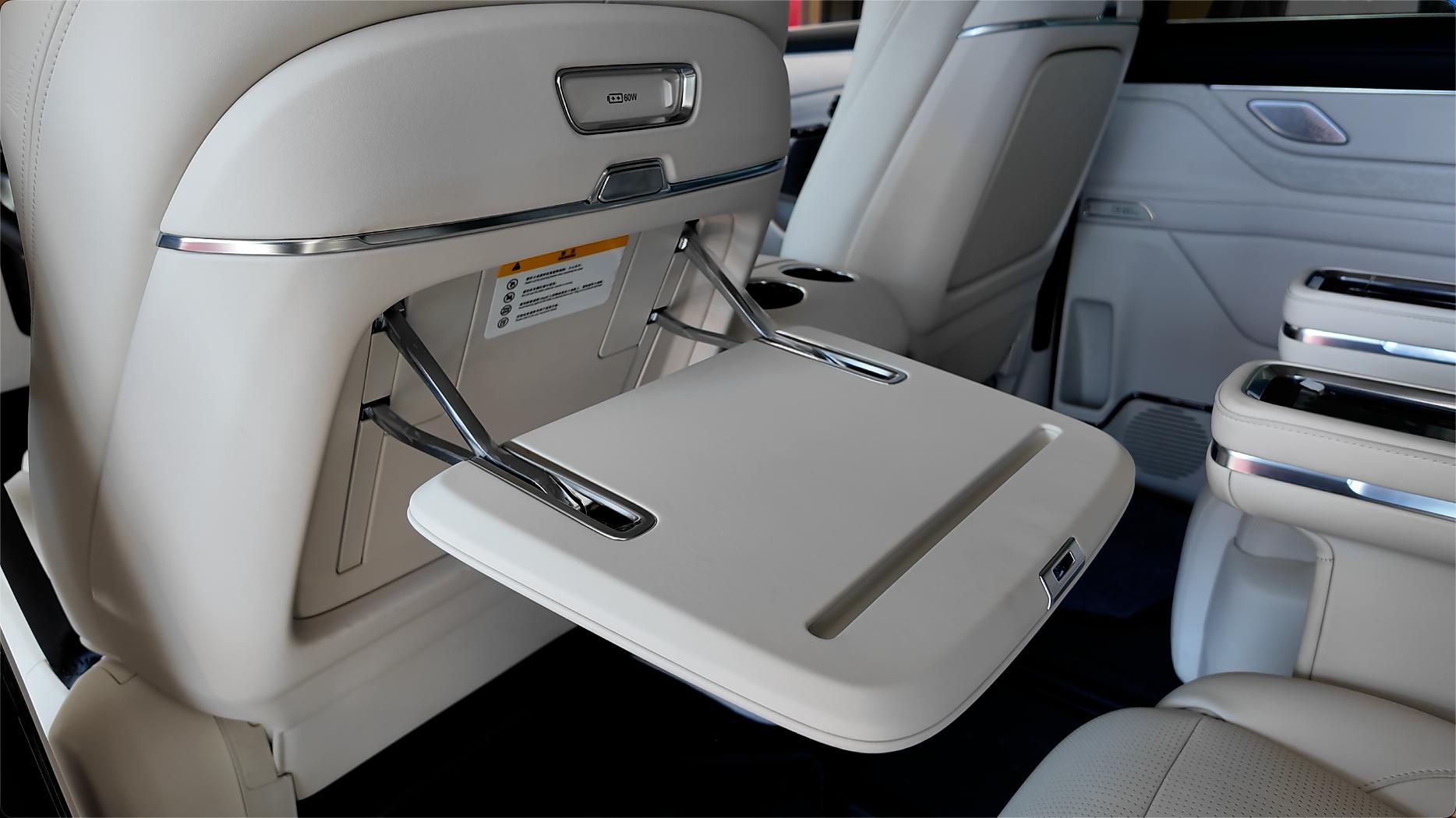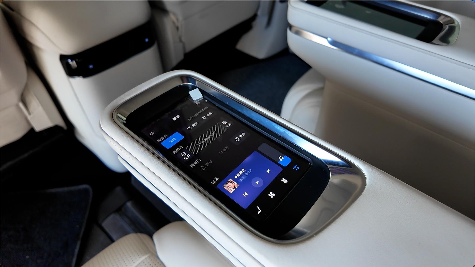 银河V900提供完备的后排舒适度,配有云感SPA座椅,支持通风、加热以及多点按摩功能。此外,后排还配有17.3英寸吸顶屏、5.98英寸扶手屏以及9.1L容量冷暖箱,温度范围零下6度到50度。