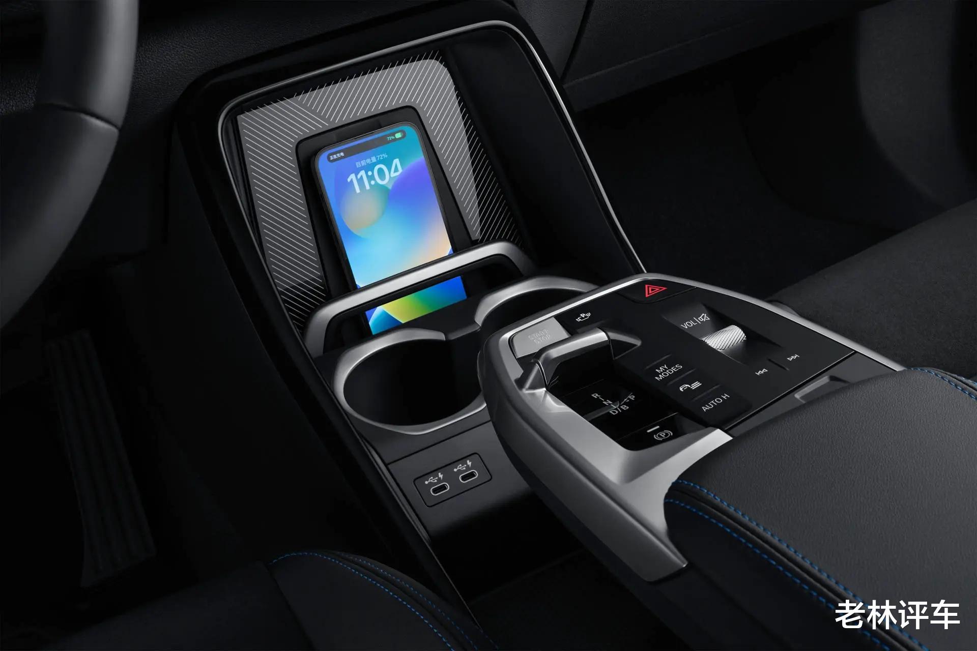 前排地台上,中高配车型还配备了手机无线充电面板,低配车型也可以选装,选装价格为2000元。