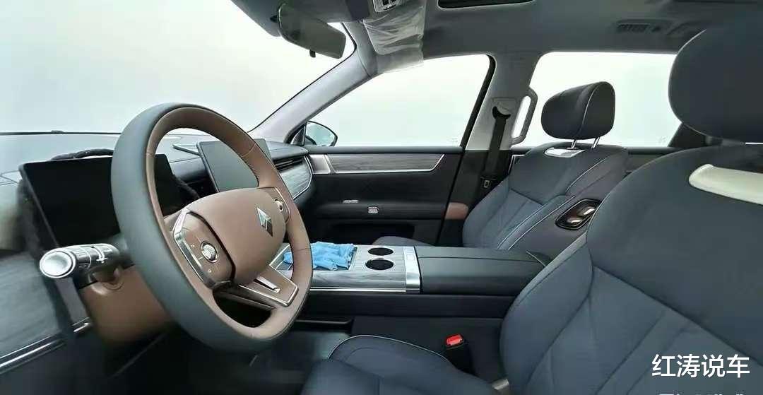 内饰方面,华境S的中控台上面基本没有实体按键,应用较多的横向线条,中间和车门部分使用了木纹饰板,采用电子怀挡机构,多功能方向盘两侧有功能调节的滚珠,配备液晶仪表和悬浮式中控大屏,副仪表台是上下双层结构,上面一层有手机无线充电面板、双杯托等。