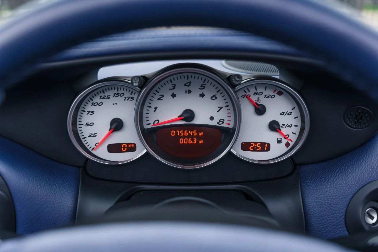 时光的痕迹,在它身上变成了“增值筹码”。作为一台2002年的老车,它的里程数达到了75700英里(约121900公里),但这恰恰证明它不是一台被束之高阁的“车库皇后”。从2004年到2024年,它的保养记录从未中断:先后在德国RUF原厂、英国多家保时捷中心、南非开普敦保时捷中心接受维护,2015至2019年,更是由知名改装厂Black Falcon GmbH进行了耗资超25000欧元的全面翻新,让它重焕新生。