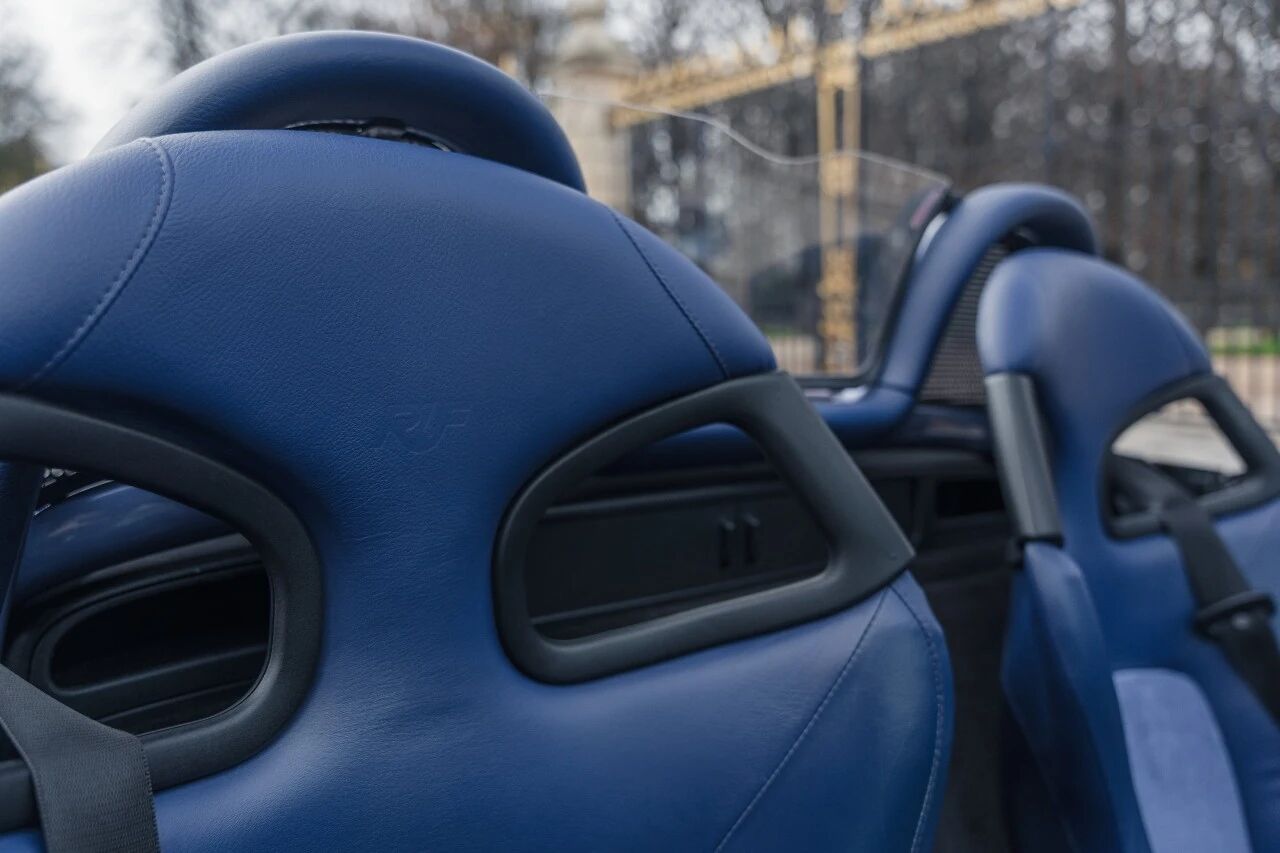 内饰的设计同样与外观遥相呼应,蓝色真皮与Alcantara翻毛皮的组合,既保证了豪华质感,又提供了激烈驾驶时的防滑性能。RUF专属的真皮Alcantara方向盘、铝合金踏板,进一步强化了战斗氛围。