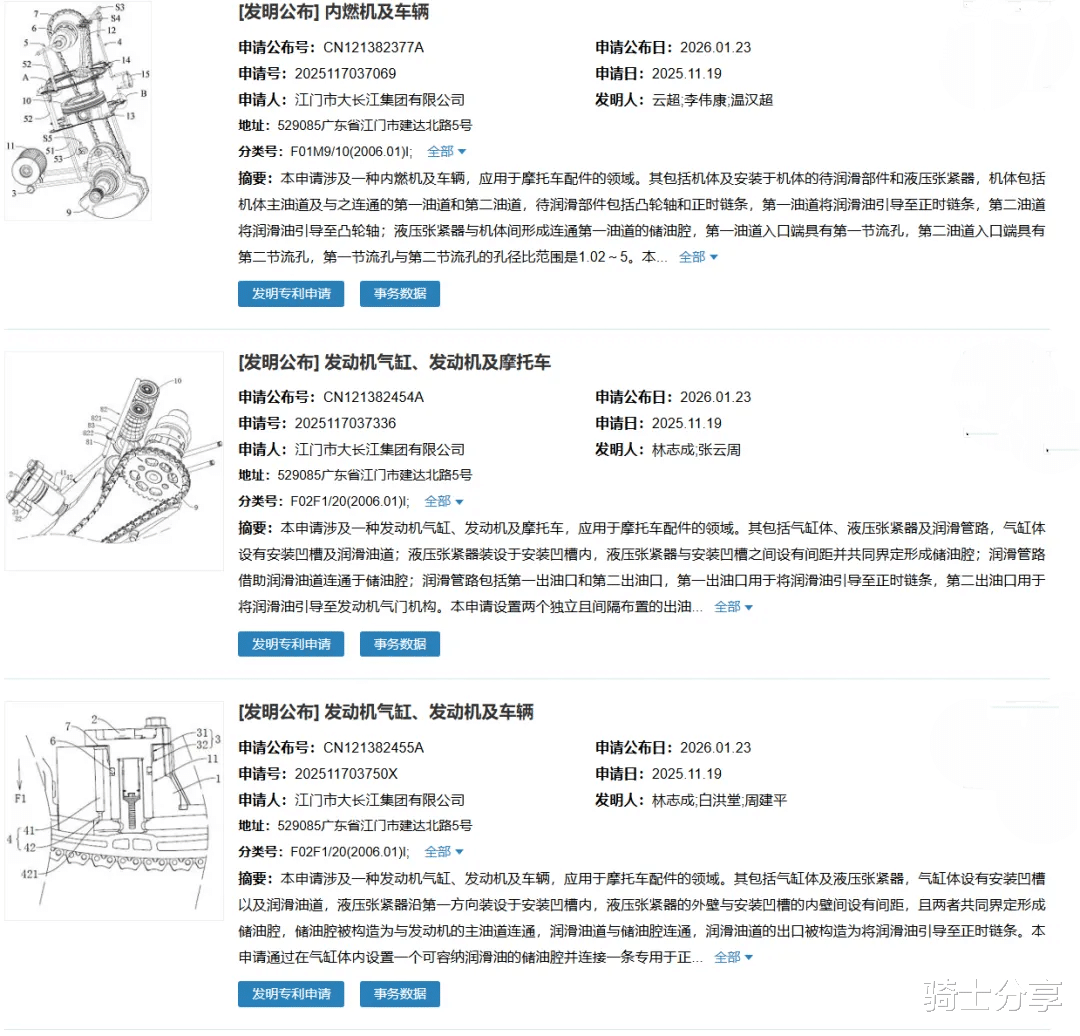 另外,曝光的还有发动机内部的油道技术、新款气缸体、液压涨紧器等相关组件。由此可见豪爵相关技术所涉及的应该是一款全新引擎,而并非单一技术。