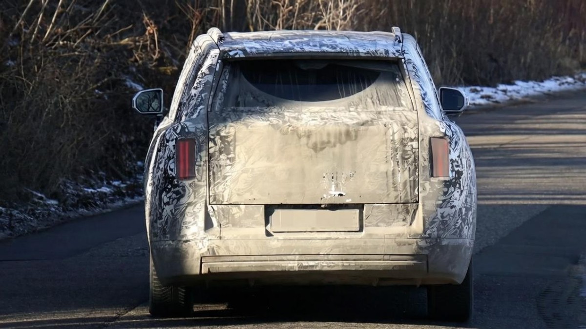 从伪装测试车的前脸中,我们能看到全新的照明方案。其实从闪灵开始,劳斯莱斯就已经在尝试着用更前卫的方式来塑造灯组,比如使用更小巧且具有科技感的光带来取代传统灯组。而在全新SUV之中,劳斯莱斯则干脆使用了更长的LED光带来试图连接车头的左右结构,这既能拓宽车辆的视觉宽度,也能为纵向层面带来更多层次变化。而远近光灯则采用了纵置布局,它几乎是在标准矩形结构内打造的,可能会有人觉得这种形态略显生硬。但对于劳斯莱斯的目标用户来说,这种具有“艺术感”的几何组合,反倒是有可能成为点睛之笔。