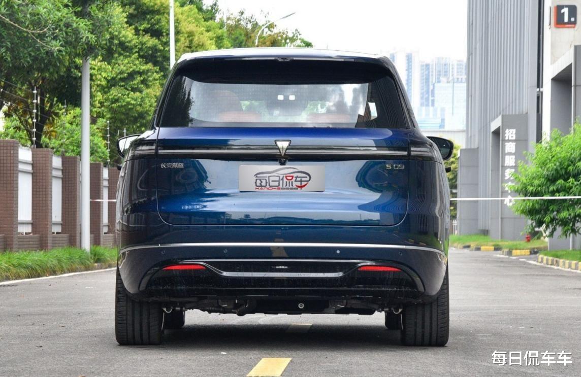 深蓝S09是标准的大型SUV,轴距达到3105mm,车身尺寸长宽高分别为5205/1996/1800mm,车身分量感很足,但外饰时尚前卫,丝毫不显笨重。