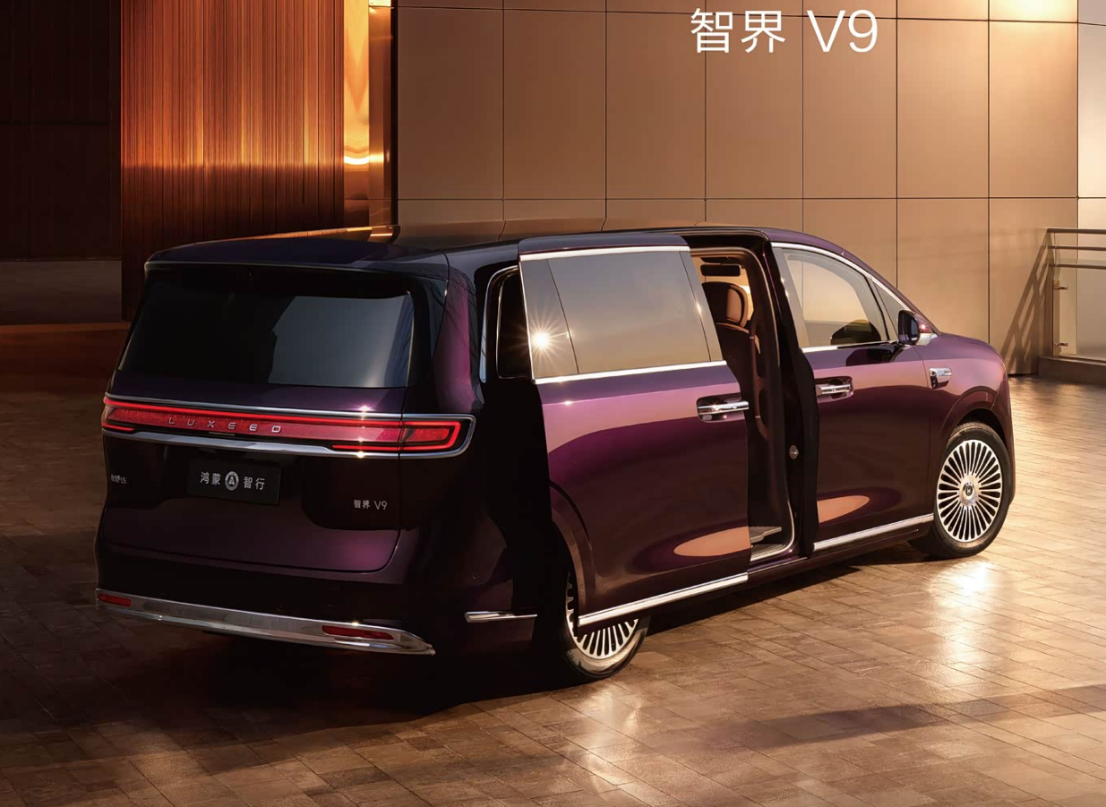 说起鸿蒙智行,大家都非常的熟悉,而智界是华为与奇瑞共同打造的一个新能源品牌,智界V9将定位的是一款高端豪华MPV,那么这一款车型到底能够给我们带来什么样的产品优势呢?今天我们就来简单的介绍一下。首先在外观的设计上,这款车型还是很有家族化设计韵味的前脸,两个大灯的造型非常的经典,配上贯穿式的灯带以及下方拉伸的进气格栅,让整个车头显得非常的圆润。车身侧面,线条比例感非常的饱满,双侧电动滑门的设计也尽显高端的属性,最后配上多幅式的轮毂也很漂亮。设计来到尾部,尾部的设计它秉承了MPV车型的整洁设计观,很清爽,然后贯穿式的尾灯高级感也很足。在车身尺寸上,这款车型的长宽高分别为5359/2009/1879mm,轴距为3250mm。