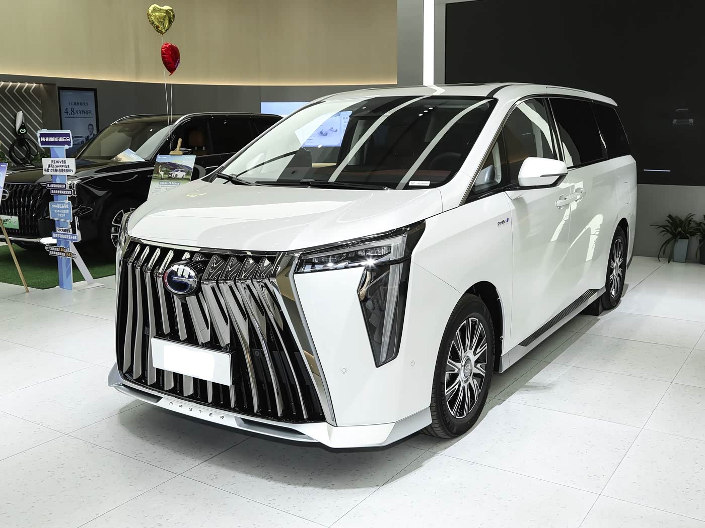 我们首先来看新车的外观设计方面,传祺E9的车头设计以东方美学为核心,创新推出双前脸可选方案,精准适配商务与家用双重场景,这也是其区别于同级竞品的核心设计亮点之一。其中“鲲鹏展翼”前脸采用横向六条格栅搭配上下两条饰件,再加一条贯穿灯组的灯带,竖向单侧五条灯带形成“横九竖五”的布局,寓意“九五之尊”,尽显庄重大气,适配商务接待场景;宗师系列则配备“震天翼2.0”醒狮前脸,格栅造型霸气凌厉,增添整车气场,更贴合追求个性的家用用户需求。