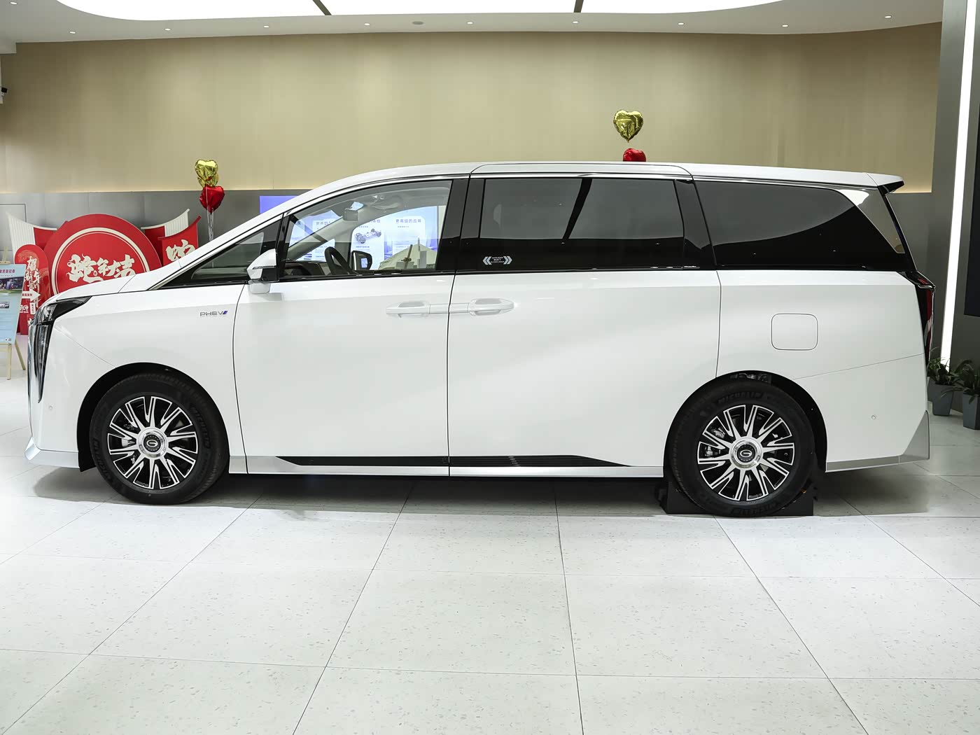 再来看车身侧面部分,车身侧面细节丰富,D柱位置设计独特,车尾玻璃延伸至边缘并与尾门玻璃融为一体,无多余装饰件区隔,营造出极强的悬浮式车顶视觉效果。车窗周围配备镀铬饰条,提升整车精致度,全系标配双电动侧滑门与18英寸大轮毂,车身尺寸方面,传祺E9长宽高分别为5193/1893/1823mm,轴距达3070mm,定位中大型MPV,整体尺寸与腾势D9相差不大,凭借科学的空间布局,实现超高空间利用率,彻底解决MPV第三排局促的痛点。车身采用短前悬、长轴距的黄金比例设计,平直的腰线从车头延伸至车尾,没有多余修饰,既耐看又能拉伸车身视觉长度。