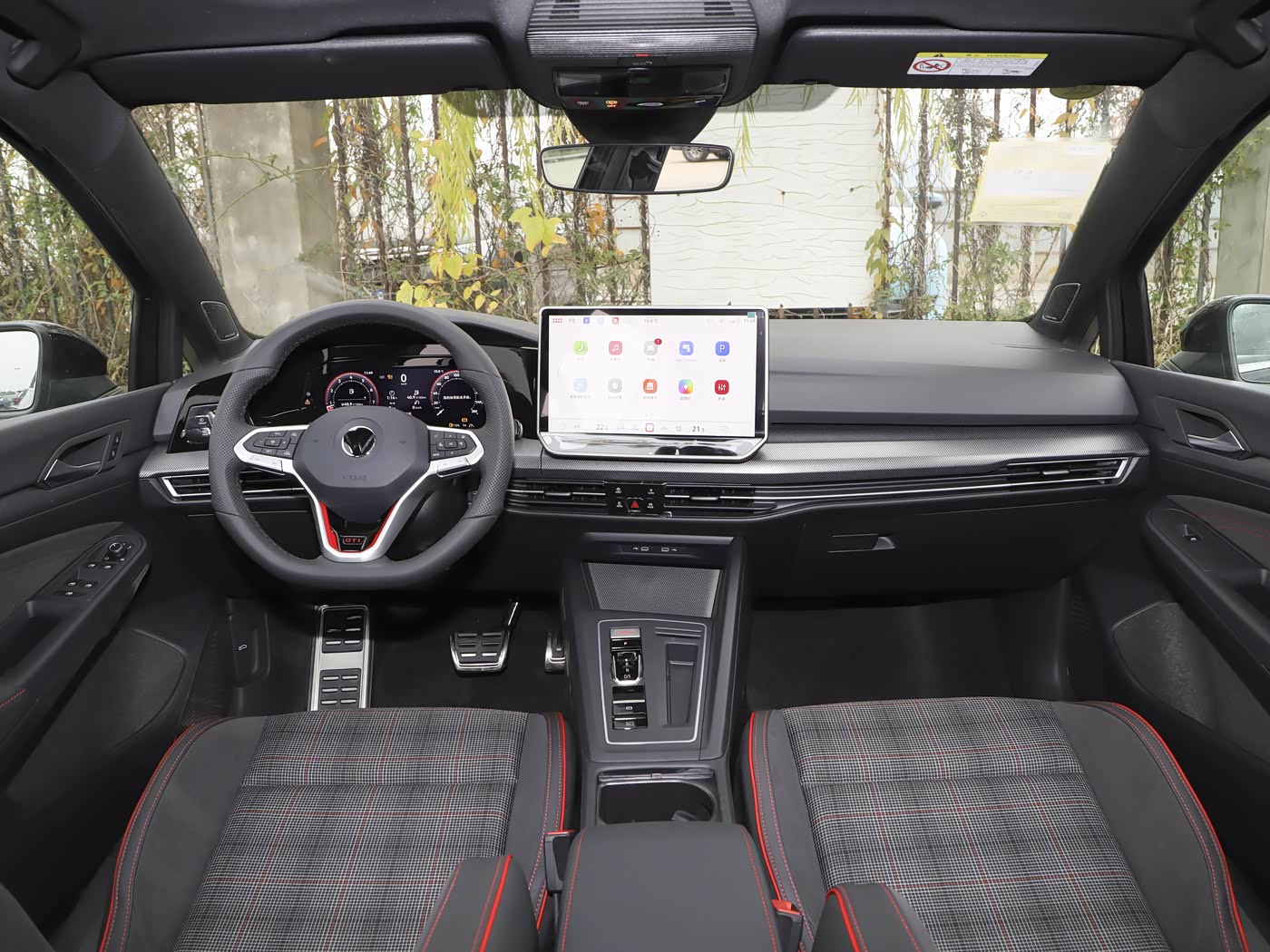 进入车内,2026款高尔夫GTI依然保持了大众家族化的内饰布局,中控区域整体偏向主驾一侧,以驾驶者为核心,配备10.25英寸全液晶仪表盘与12.9英寸悬浮式中控屏的组合,显示清晰直观,内置高通8155芯片和IQ.Connectivity智联系统,支持CarPlay/CarLife手机互联,操作流畅不卡顿。空间表现上,作为一款5门5座两厢车,其空间虽不算越级,但足以满足日常通勤与短途出行需求。前排调整至舒适坐姿后,身高180cm的驾驶者头部仍有1拳余量,不会感到压抑;后排纵向空间适中,对于170cm左右身高的乘客而言,腿部有充足活动空间。