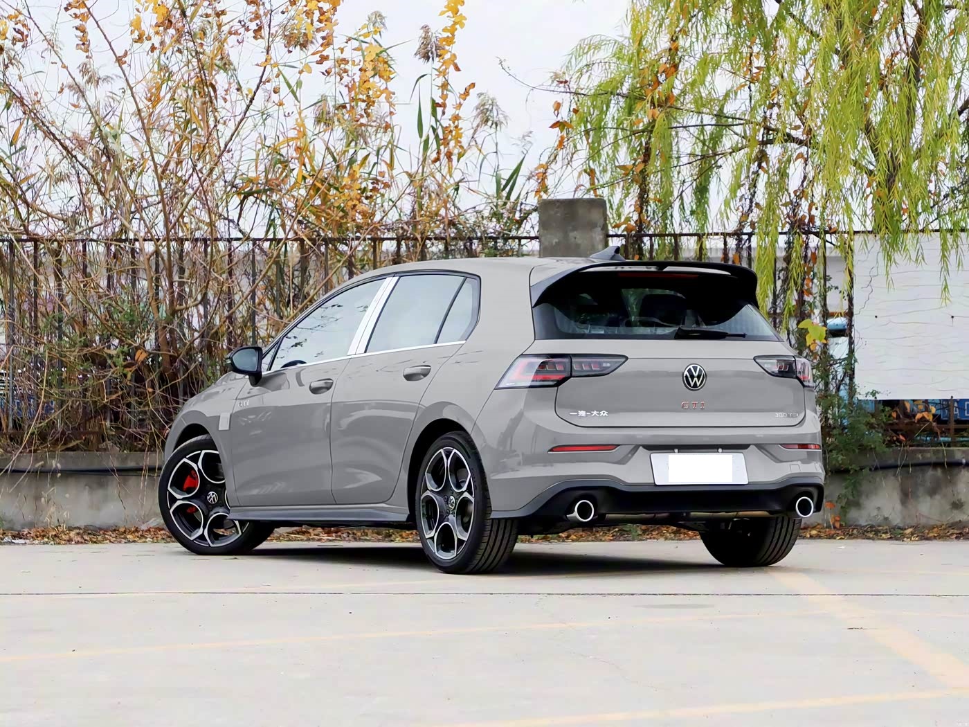再来看车身侧面部分,车身侧面线条干练而富有张力,4296mm的长度与1788mm的宽度营造出紧凑却舒展的比例。腰线从前翼子板延伸至尾灯,搭配18英寸“Richmond”战斧轮毂,运动感十足。五环造型双色轮毂与红色刹车卡钳成为点睛之笔,凸显高性能车的专属气质。车顶采用溜背式设计,兼顾实用性与空气动力学效率,而C柱的GTI徽标则强化了品牌辨识度。整体侧面轮廓在保持高尔夫DNA的同时,通过细节优化提升了现代感与视觉冲击力。