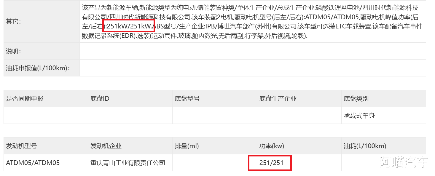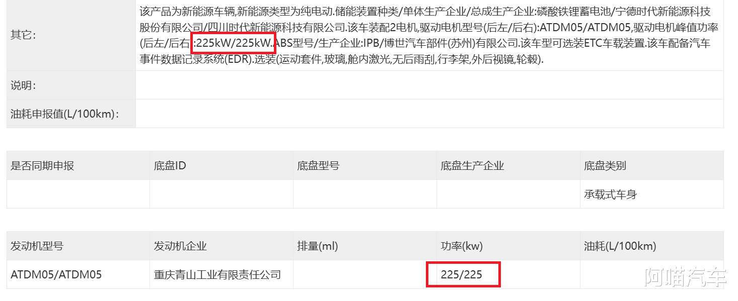 双电机后驱版的电机功率,有225kW/225kW和251kW/251kW两种可供选择,总功率分别是450kW和502kW。