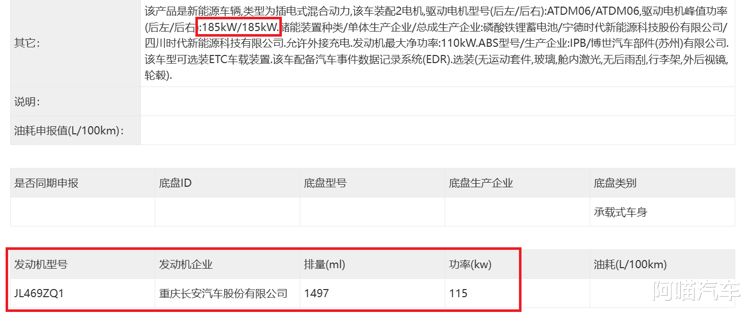 增程版目前只看到电机功率185kW/185kW的后驱版本,上了一块45度的电池。